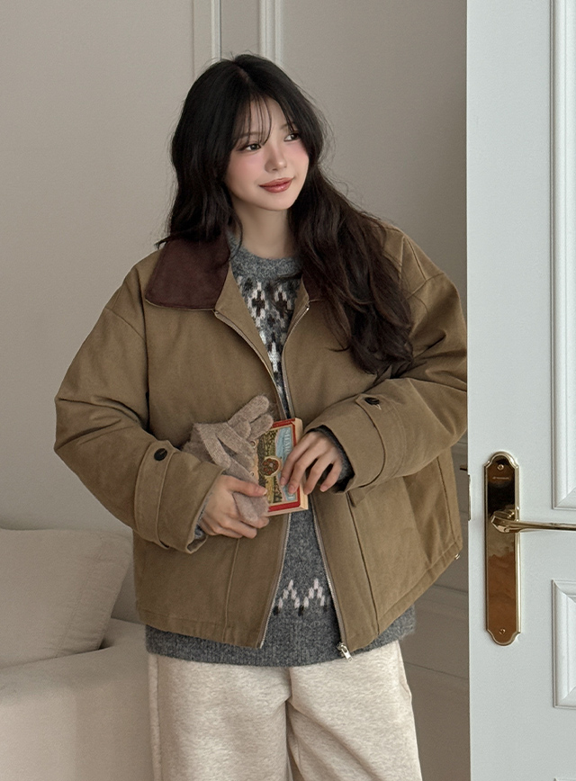 보이딘 配色 领 棉衣 夹克 (3唡) 84787