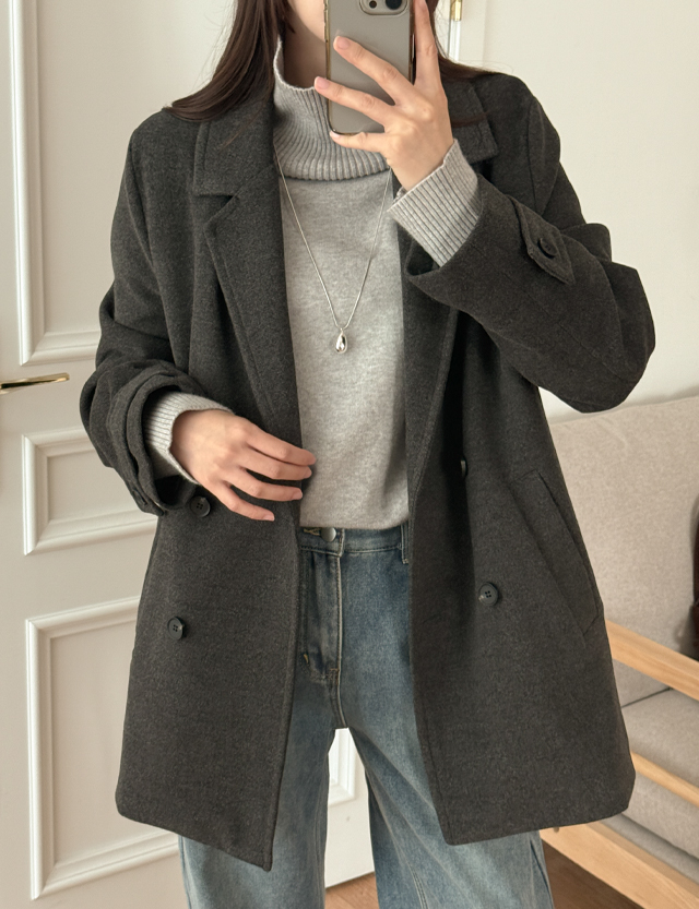 포이트 双 宽松 短上衣 大衣 (2唡) 84992