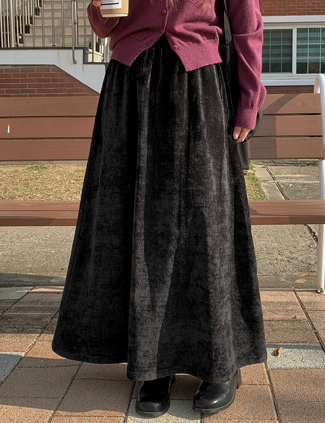 뉴디스 松紧带 벨루아 波浪群/喇叭裙 맥시 裙子 84626