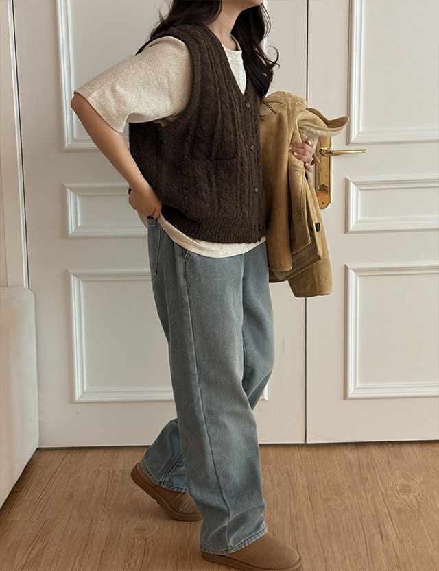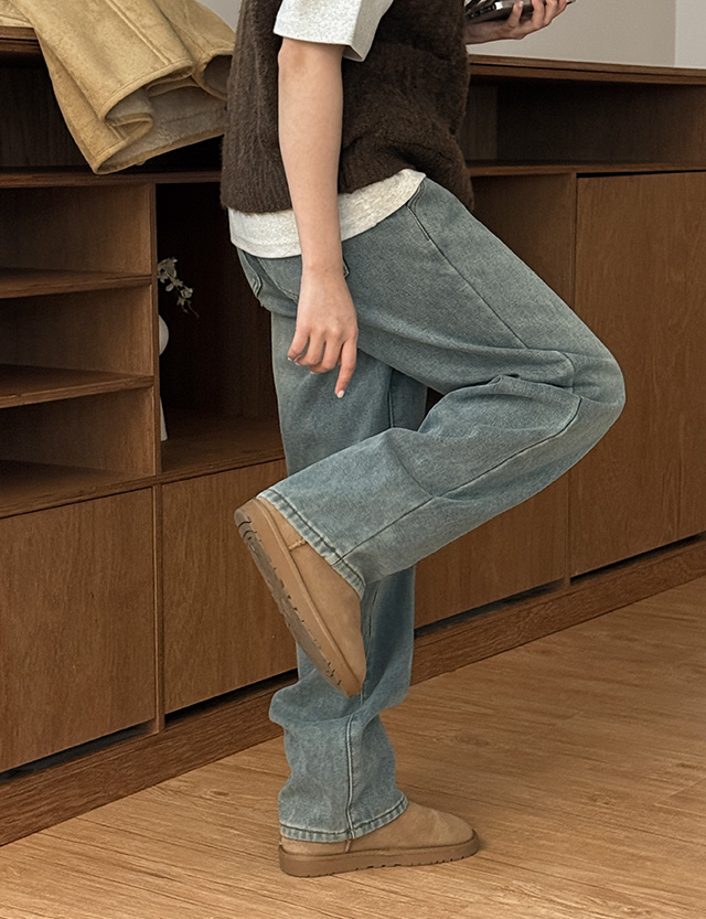 마이드 전체밴딩 세미와이드 拉绒 牛仔色 短裤 84852