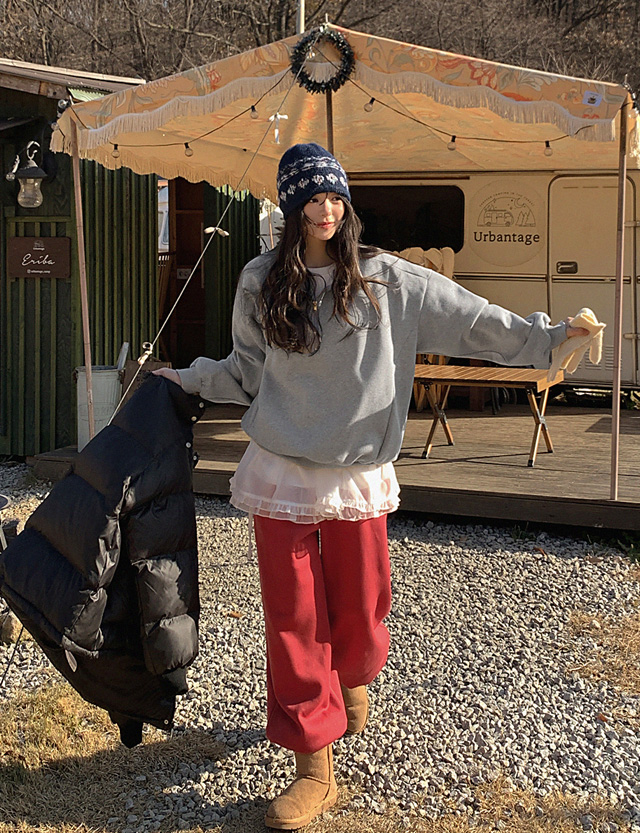 • 블루닛 刺绣 半自动化 拉绒 宽松 套头卫衣 85066
