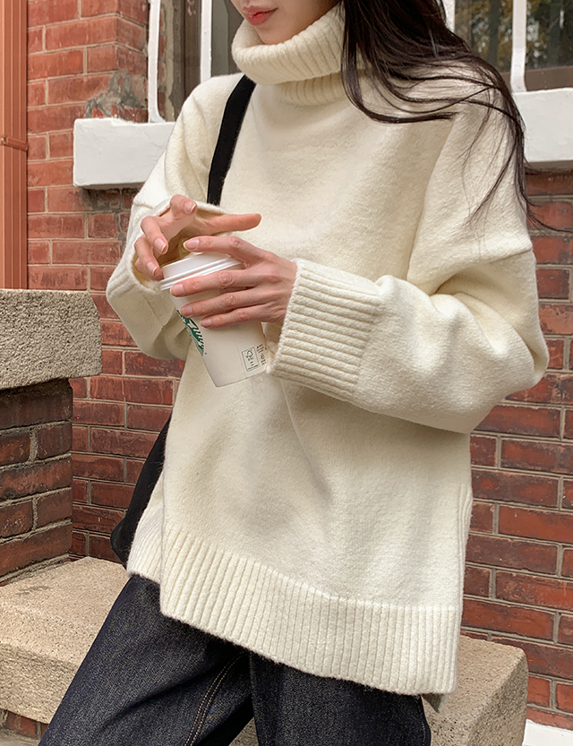 왈라드 宽松 언발 포근 高领毛衣 针织衫 85130