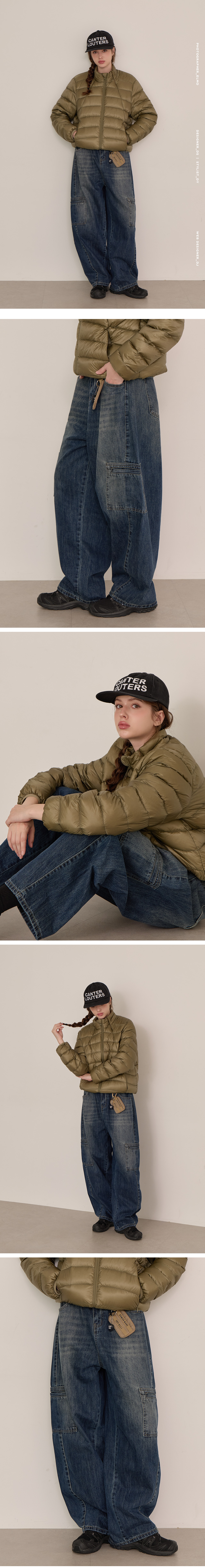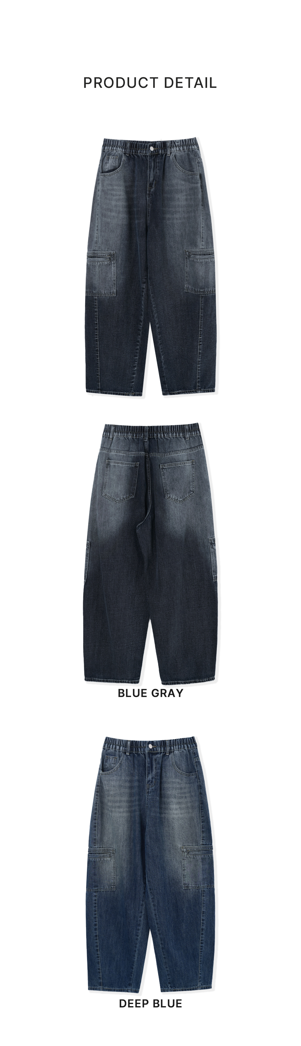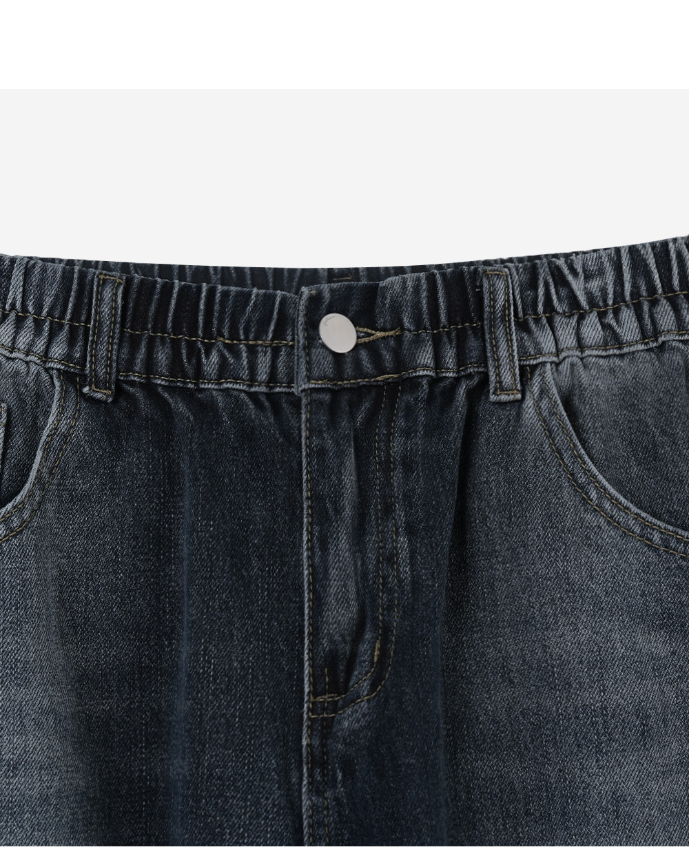 쿄이니 蓬蓬裙 工装裤 牛仔色 松紧带 短裤 85006
