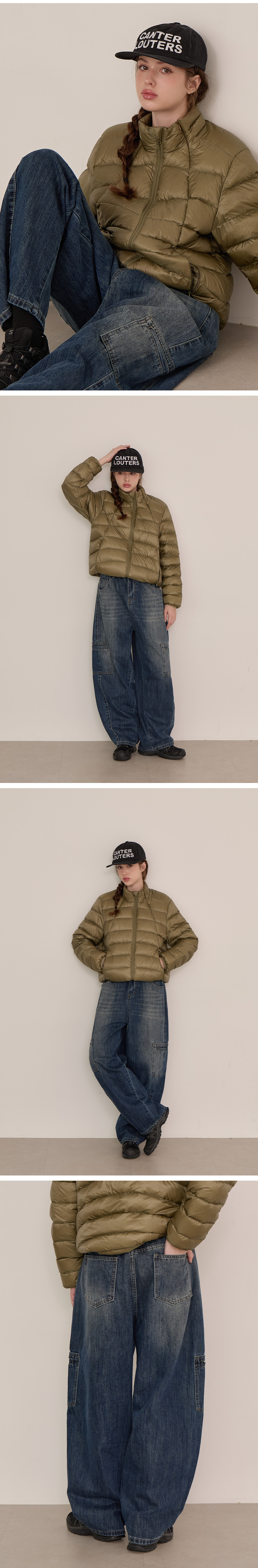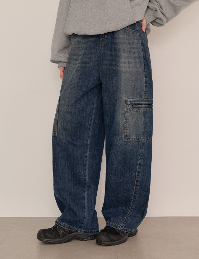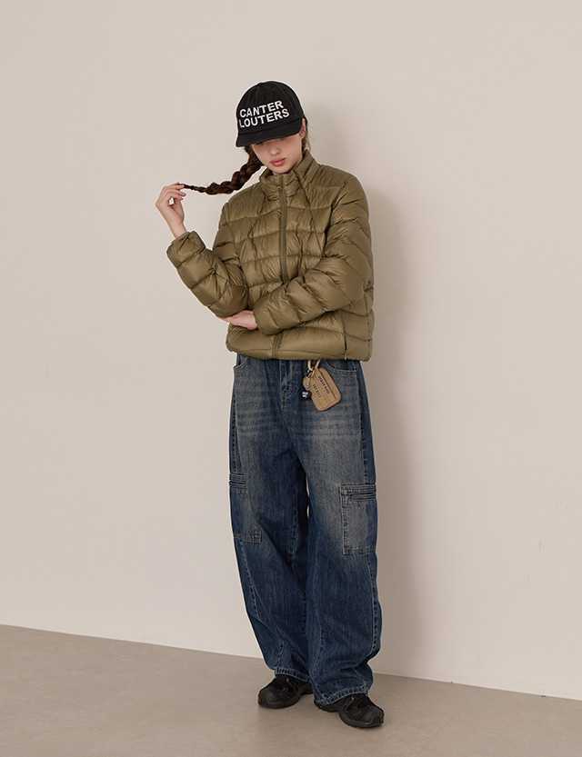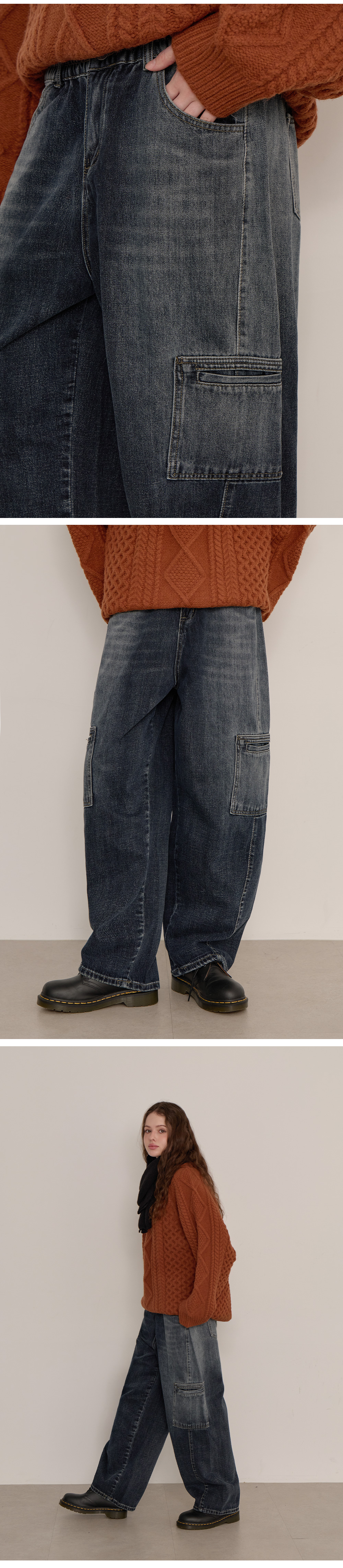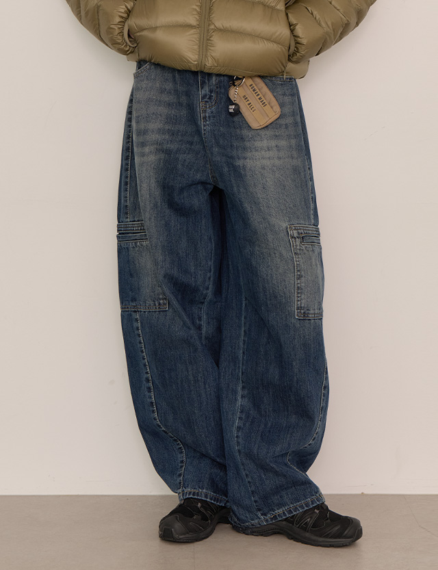 쿄이니 蓬蓬裙 工装裤 牛仔色 松紧带 短裤 85006