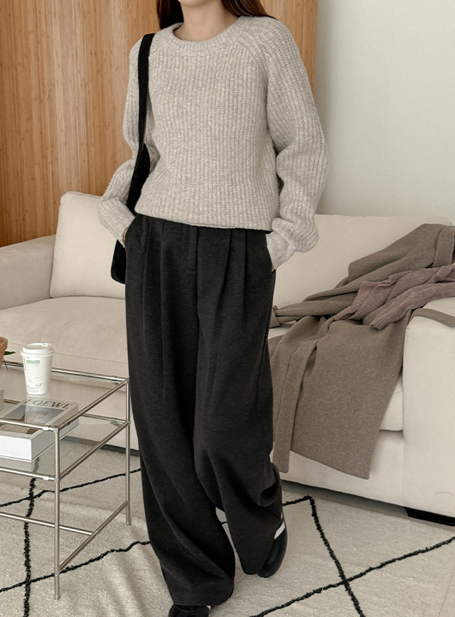 [3가지기장] 도톰따뜻 핀턱 비죠 宽 拉绒 宽松裤 84996