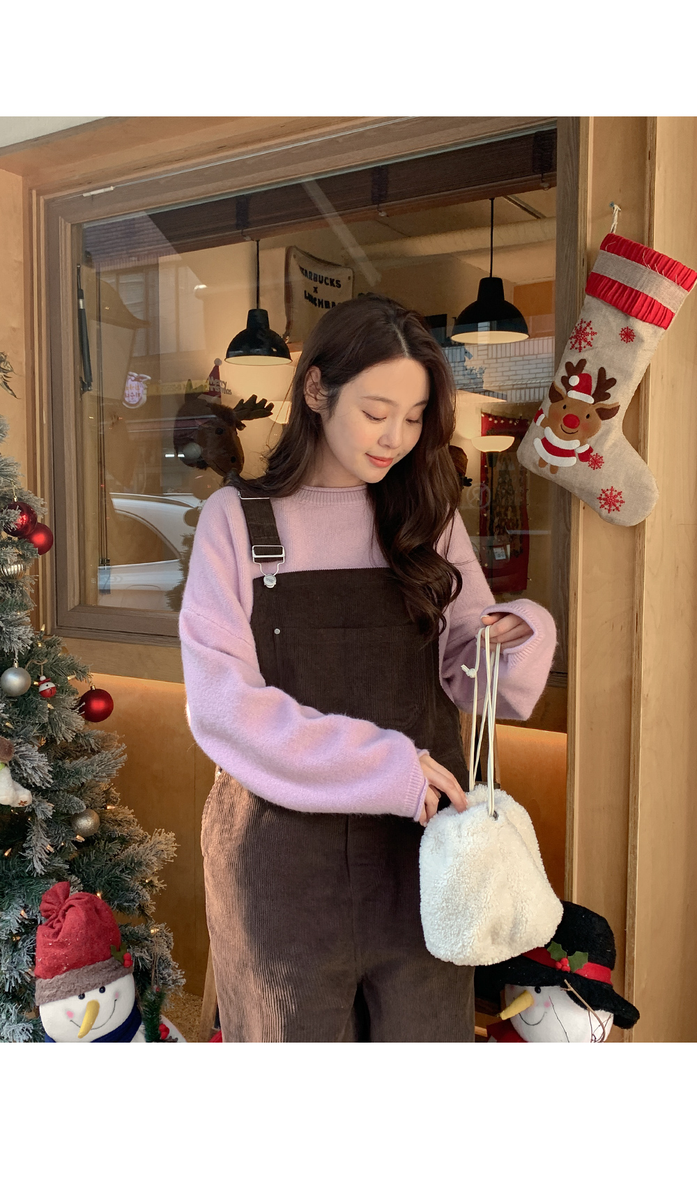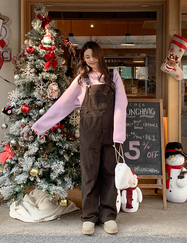 • 淡褐色 코듀로이 背带裤 宽 短裤 84898