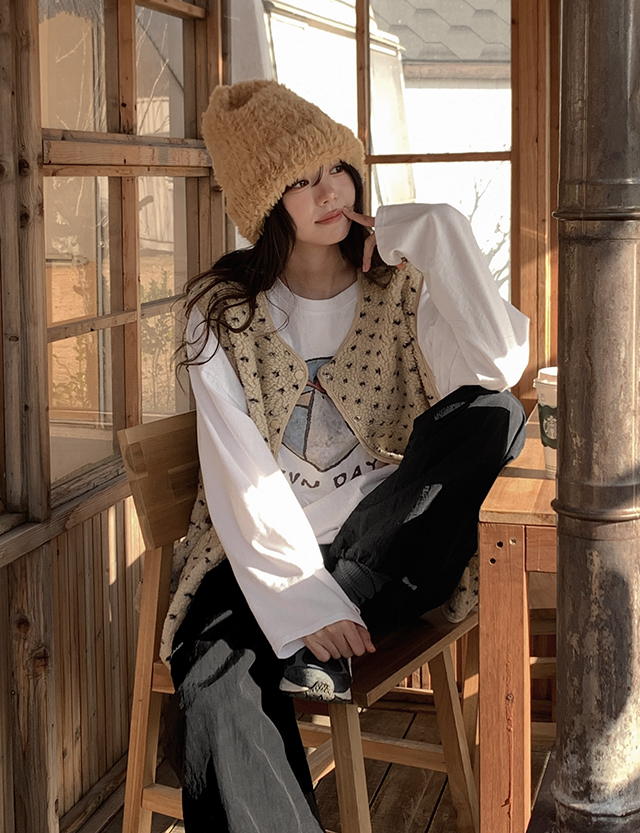 [09초이스] 귀욤치즈덕 拉绒 宽松 T恤衫 85154