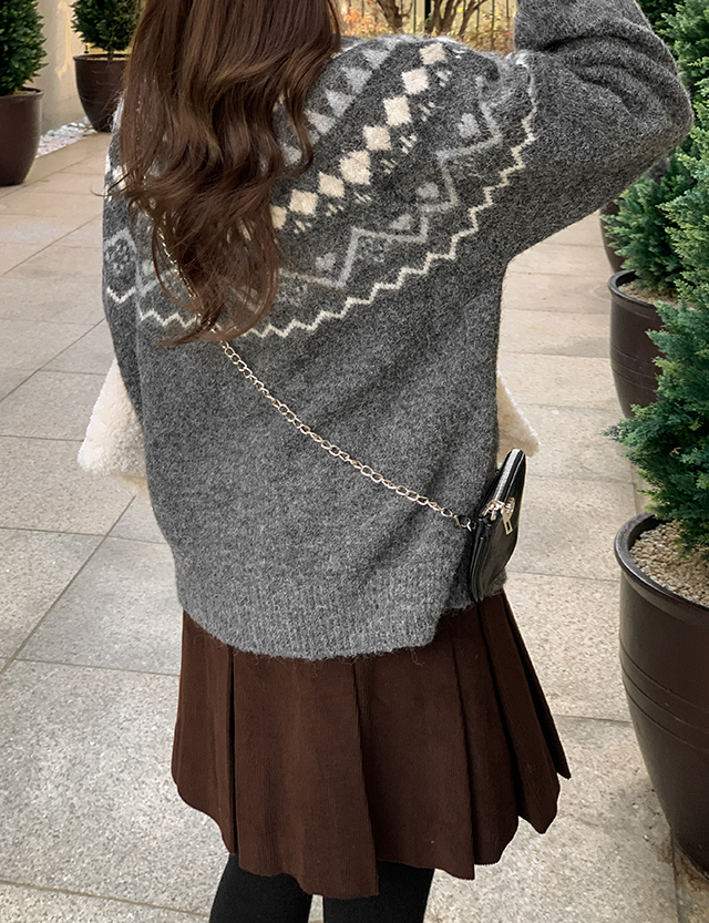 잔잔한 노르딕 패턴에 깔끔한 라운드넥으로