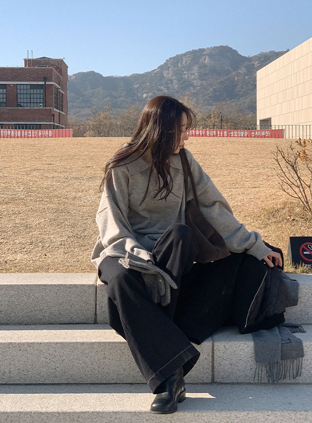 • 데일리템 반오픈 领 宽松 针织衫 85126
