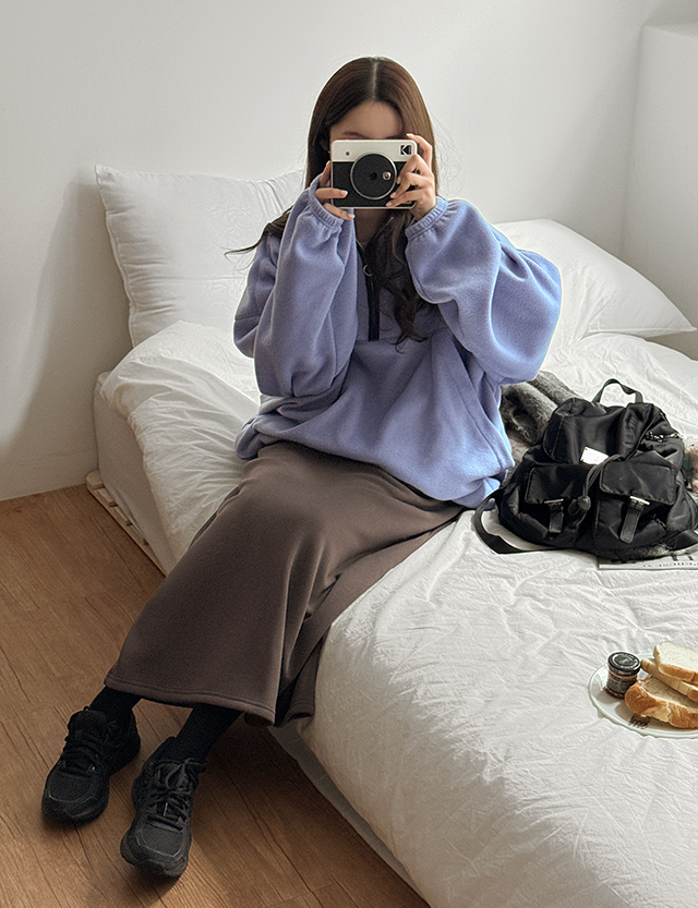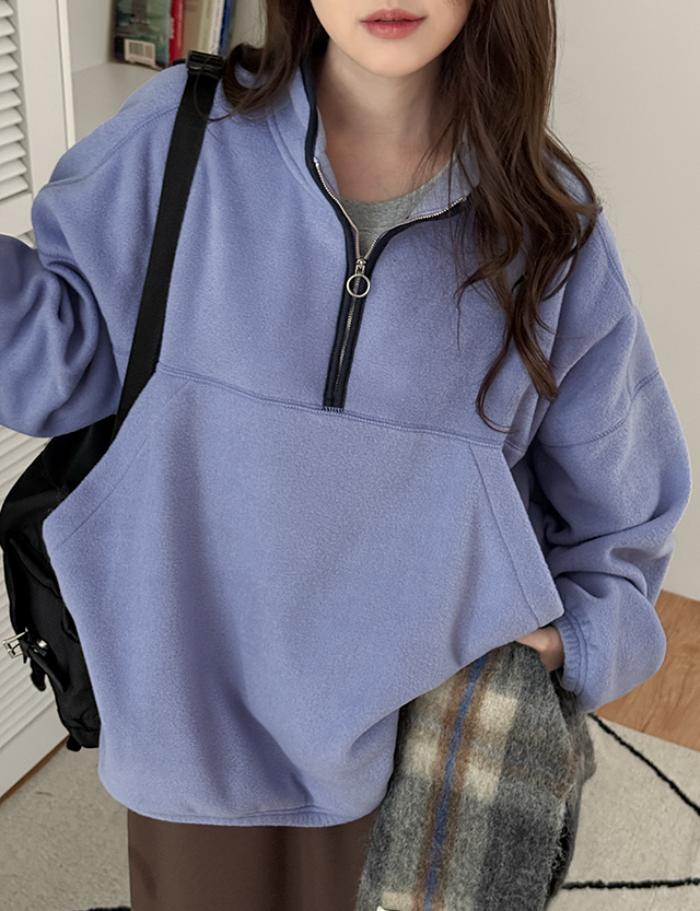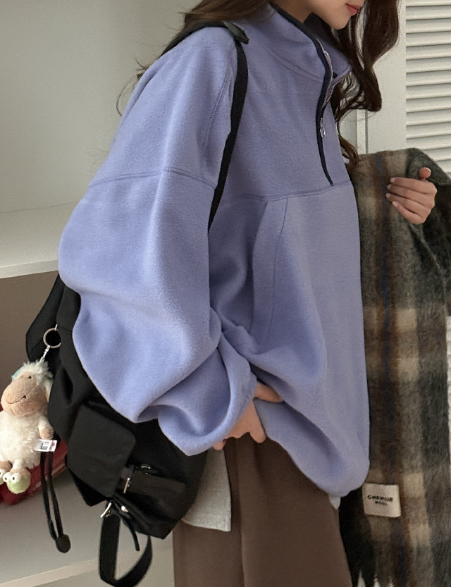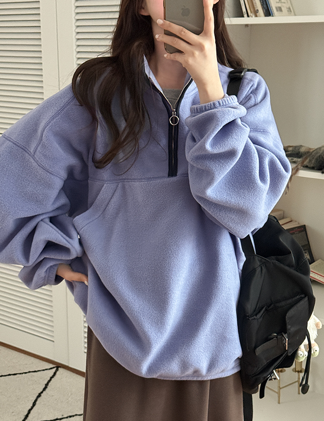 넉넉한 리얼루즈핏의 플리스 반집업 맨투맨이에요
