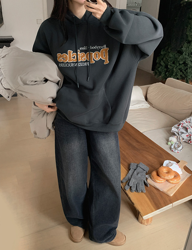 팝시클 宽松 밍크기모 带帽T恤衫 85326