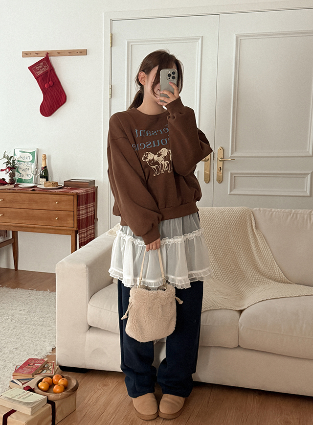 • [아방핏]코지퍼피 宽松 拉绒 印刷 套头卫衣 85232
