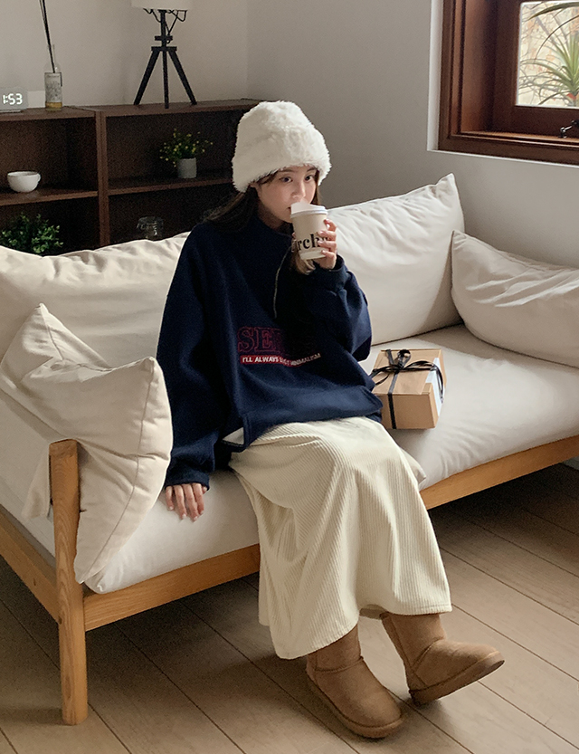 루네 코듀로이 拉绒 松紧带 长款 裙子 85388