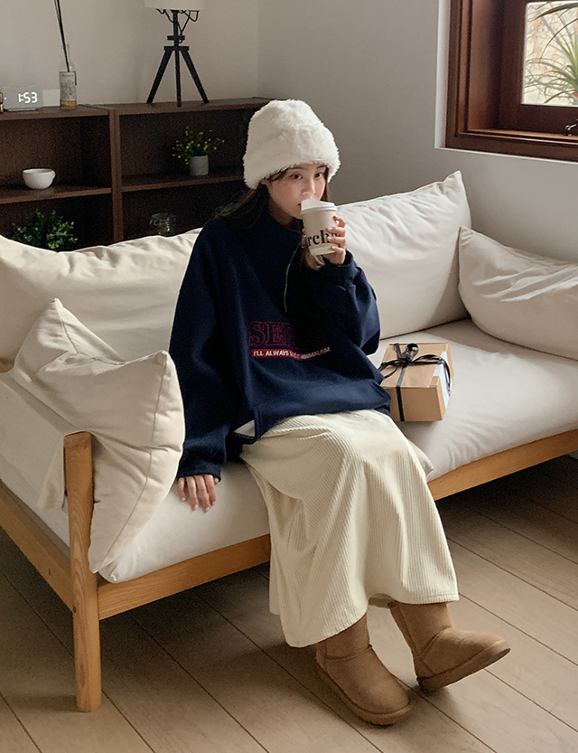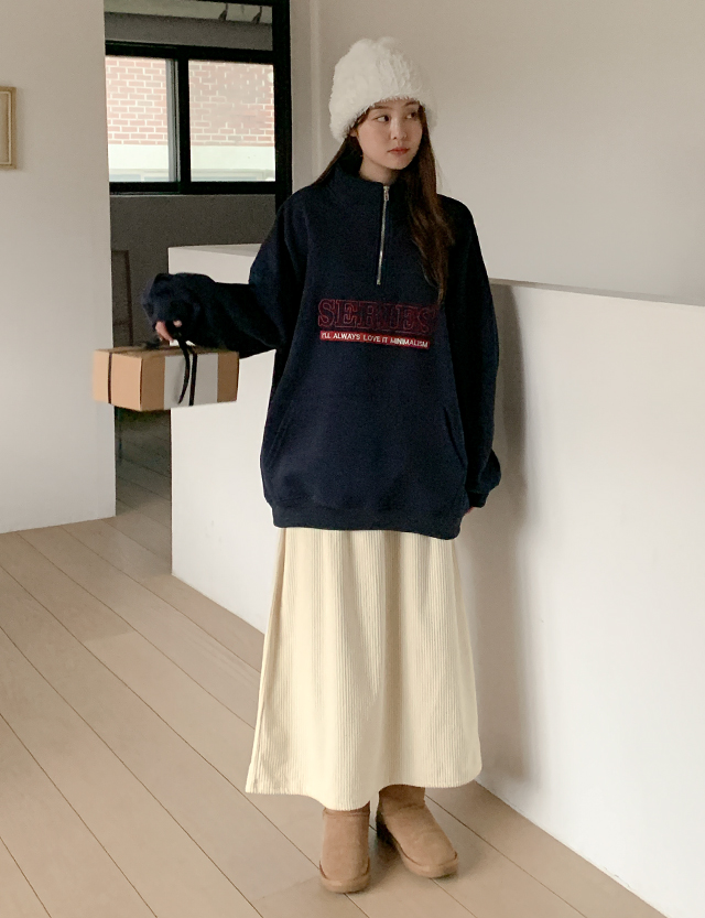 루네 코듀로이 拉绒 松紧带 长款 裙子 85388
