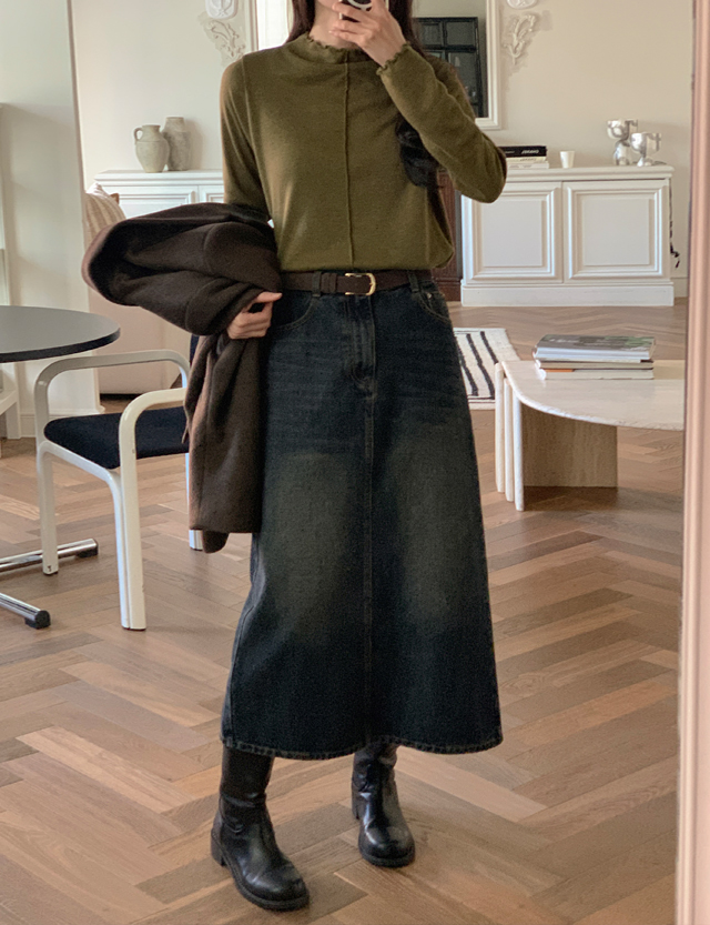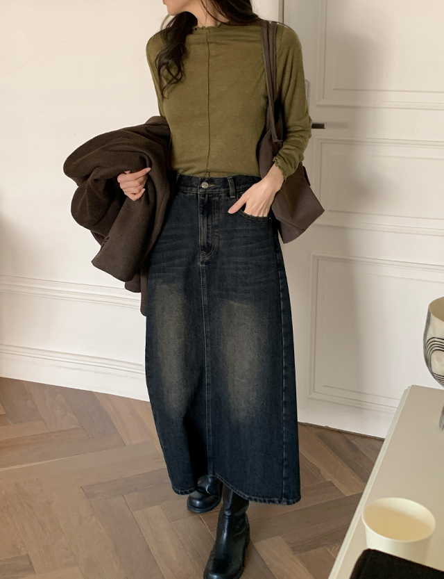 코디가 쉬운 속기모 长款 牛仔色 裙子 85356