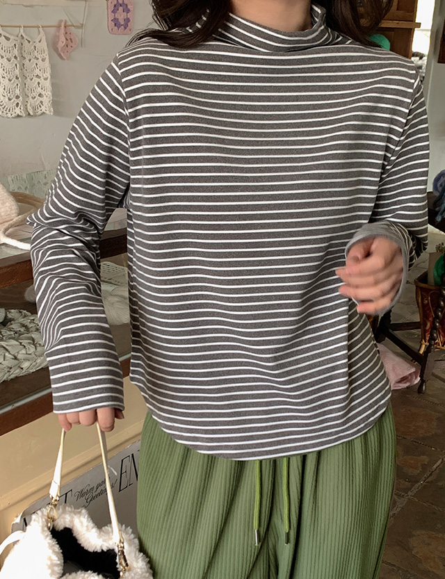 드리밍 양기모 条纹 高领毛衣 T恤衫 85472