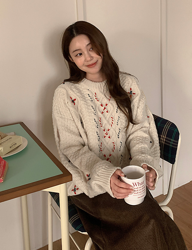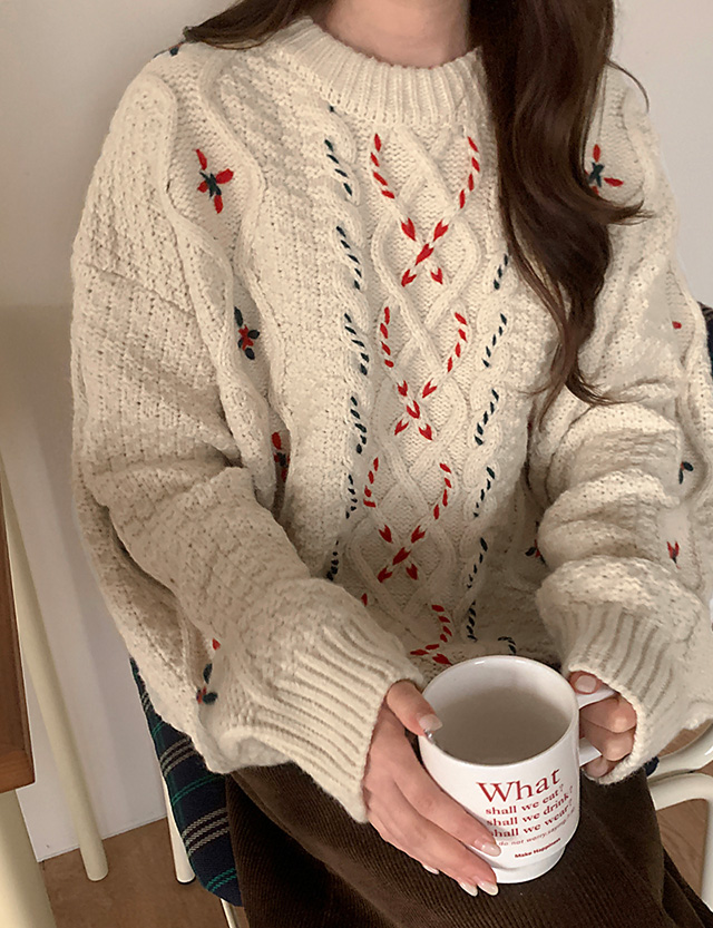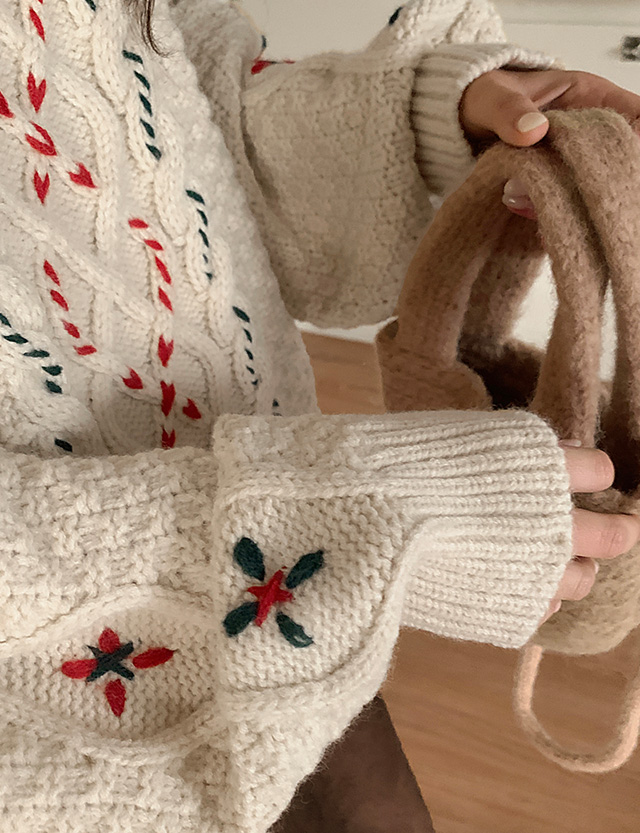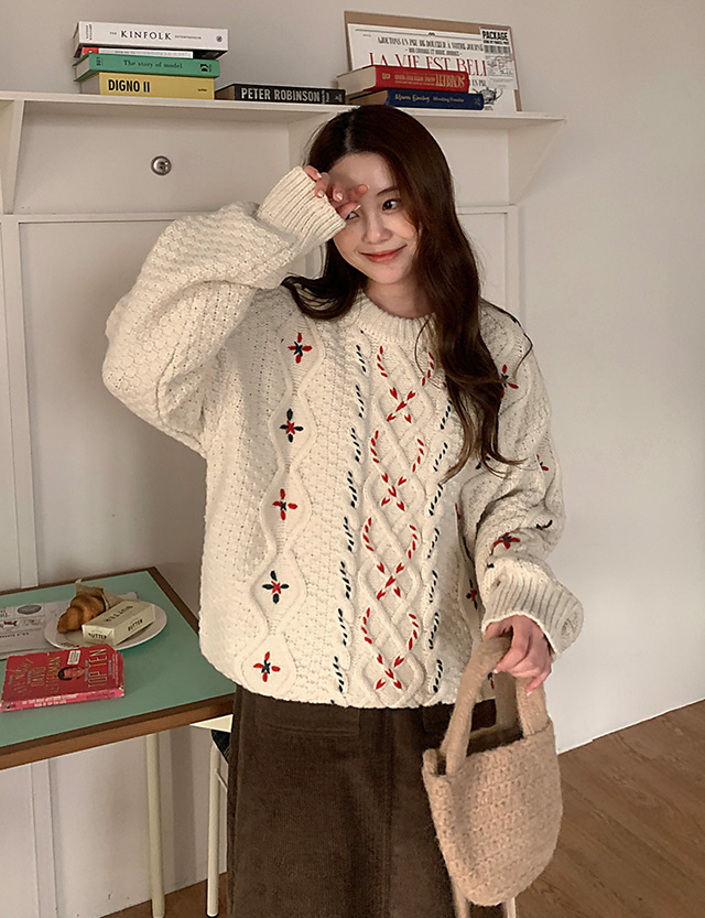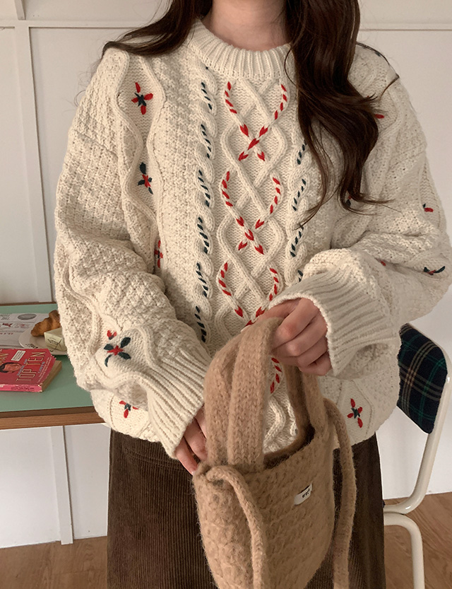 바트 钻石 刺绣 圆领 羊毛 针织衫 85385