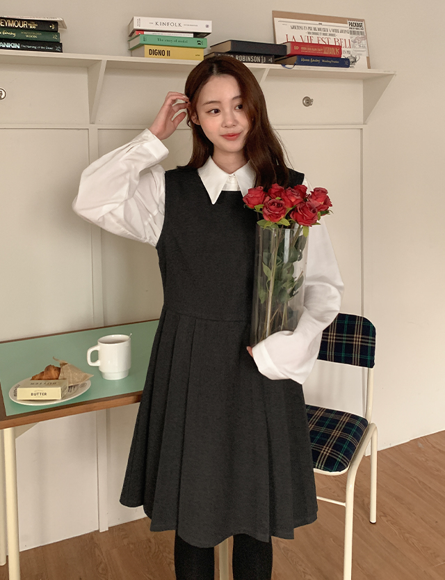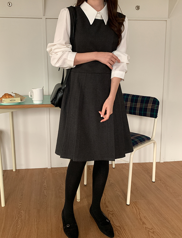 러민 미디&长款 百褶 뷔스티에 连衣裙 85371