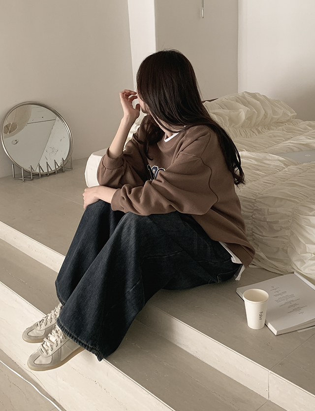 쏘플 宽松 分层 레터링 拉绒 套头卫衣 85425