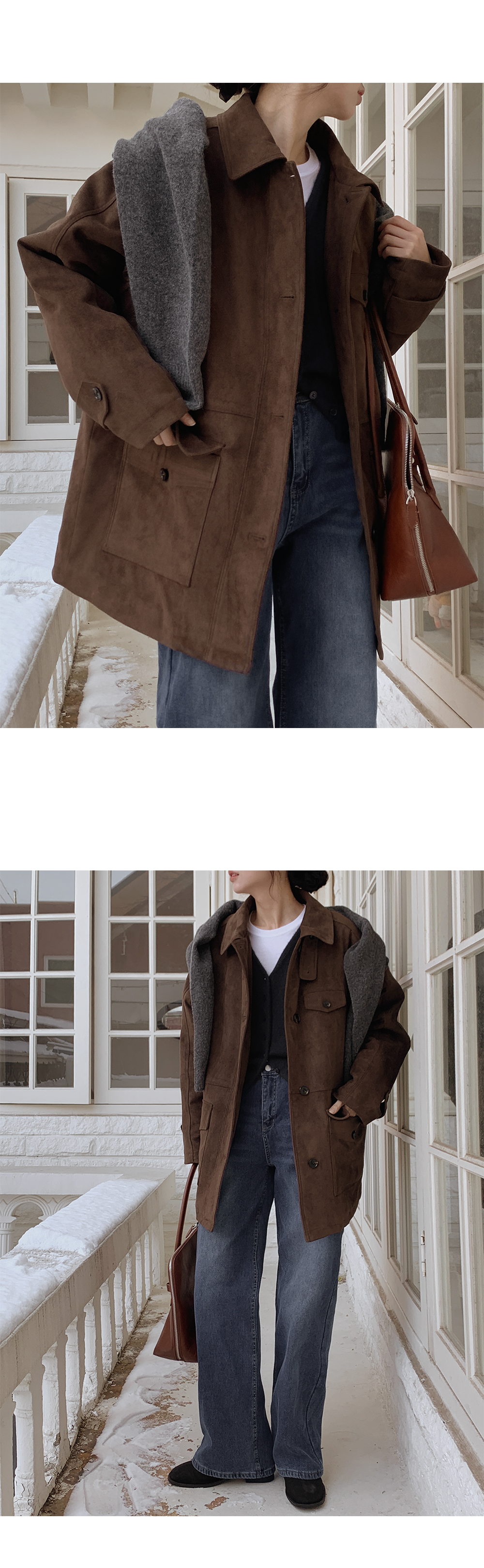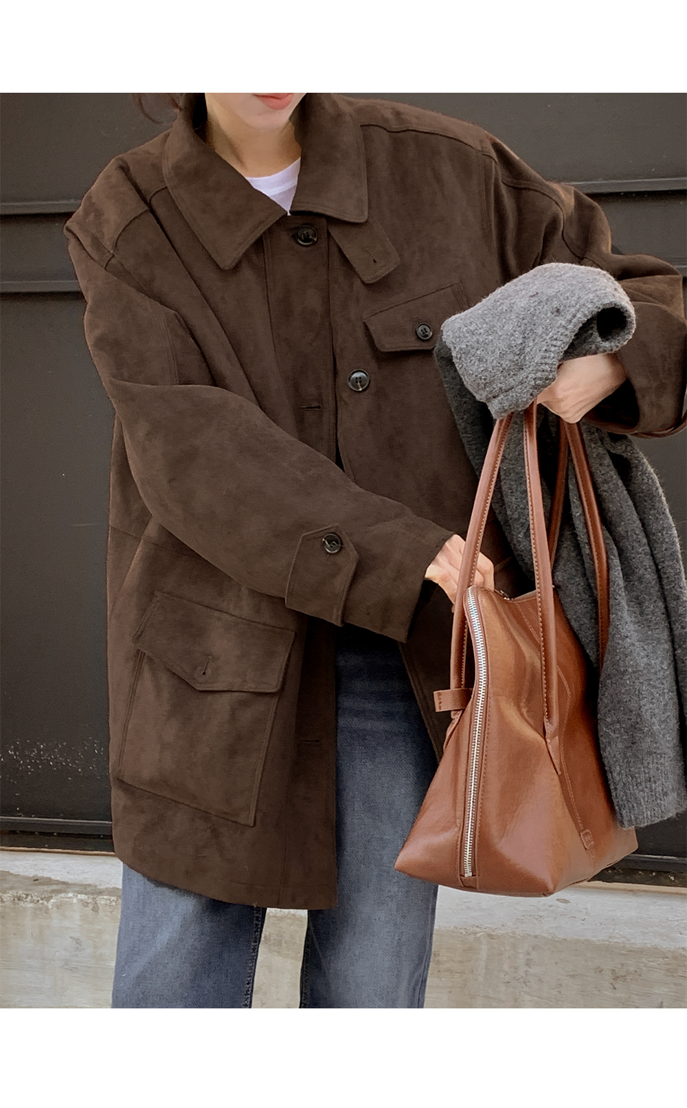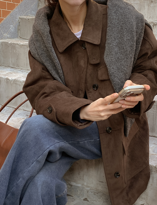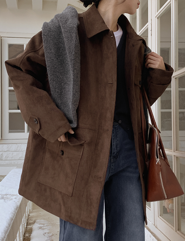 부드럽게 결이 살아 있는 페이크 스웨이드가 포근한 온기를 전해주는 점퍼예요.