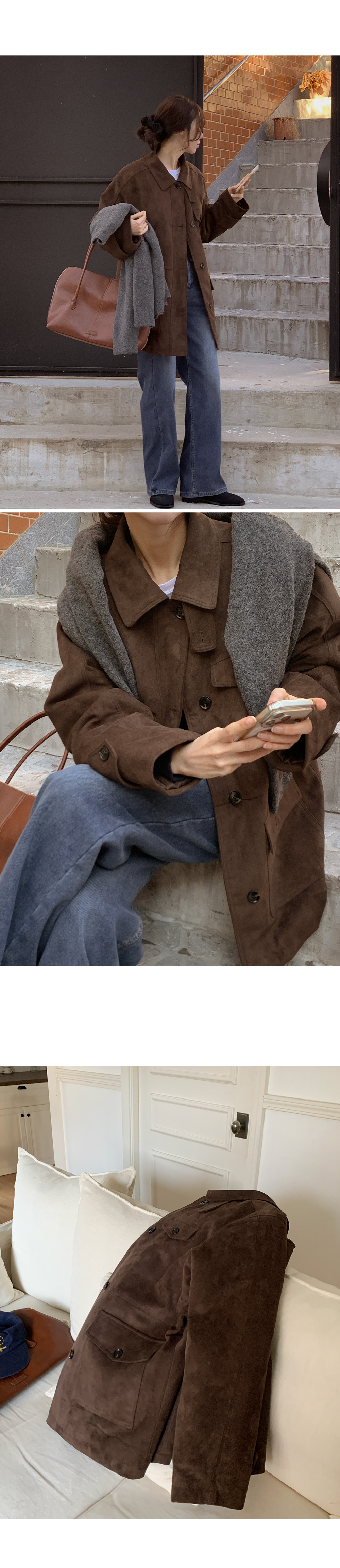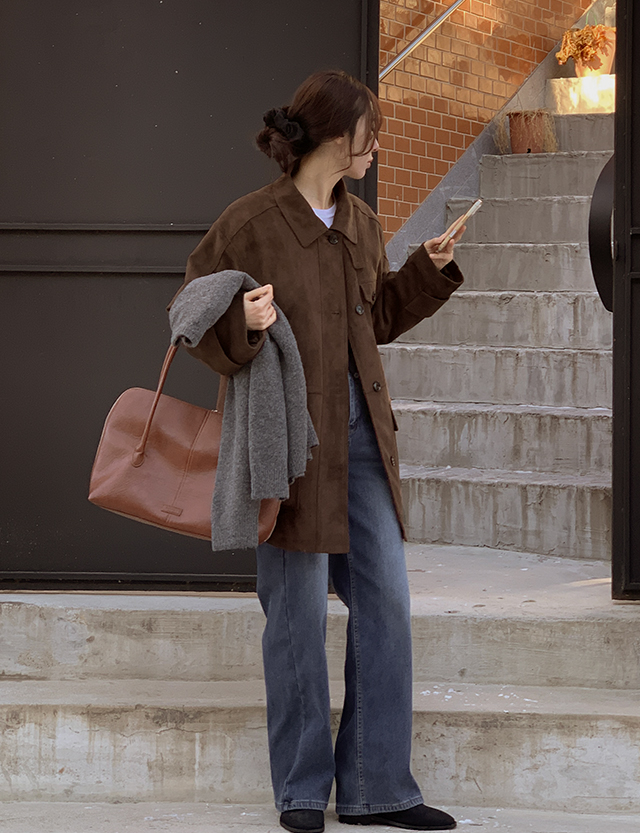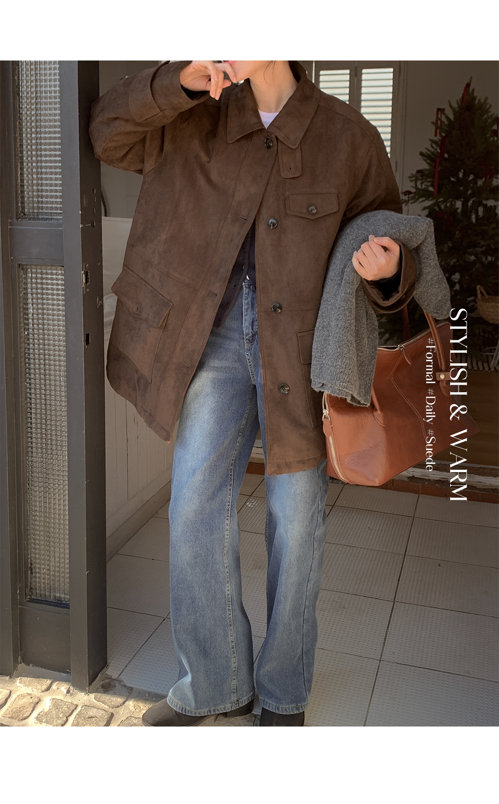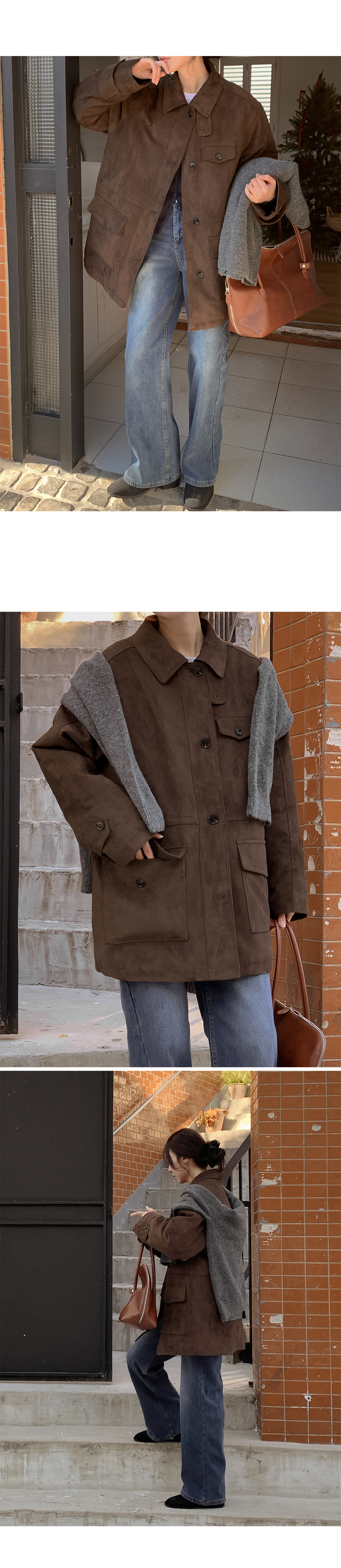 부드럽게 결이 살아 있는 페이크 스웨이드가 포근한 온기를 전해주는 점퍼예요.