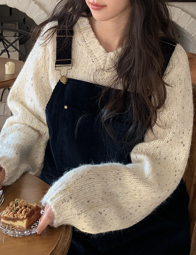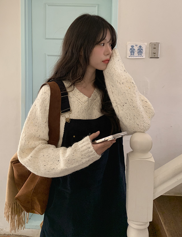 도엘 컬러믹스 羊毛 V领 针织衫 85460