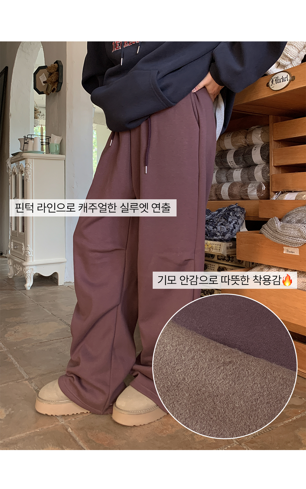 한겨울까지 따뜻하게 착용하기 좋은 팬츠예요.