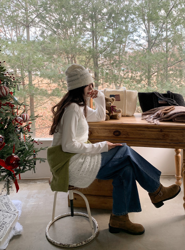 • 드엘 물결 겉기모 高领毛衣 T恤衫 85449