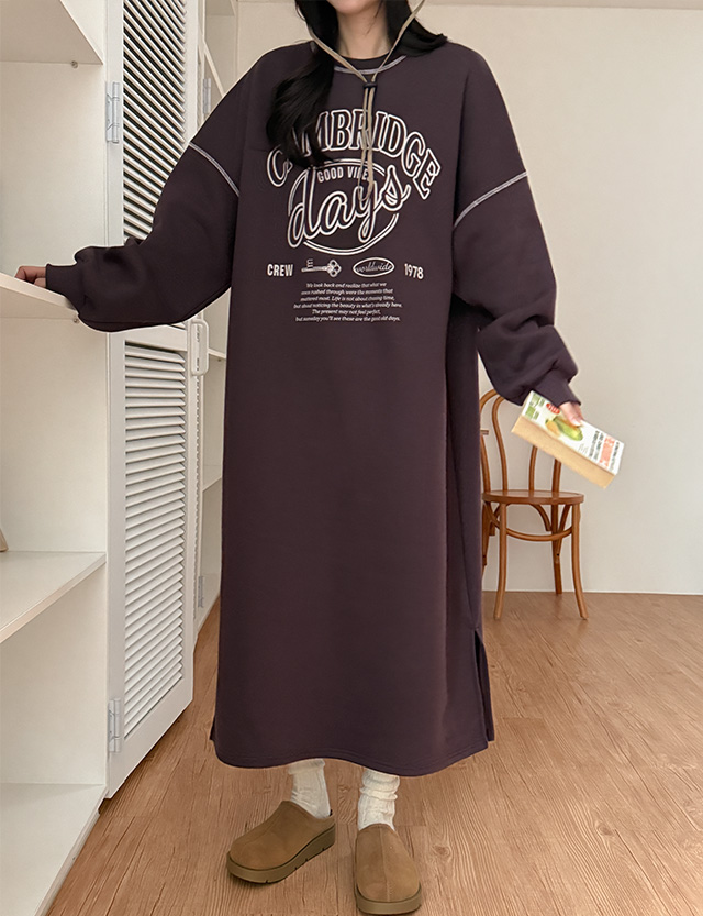 굿디즈 配色 关键点 宽松 拉绒 长款 连衣裙 85598