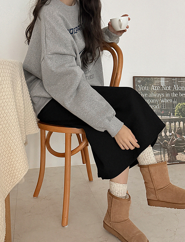 • 말랑쭉쭉 松紧带 拉绒 H字型 长款 裙子 85498