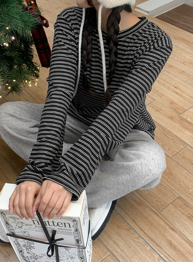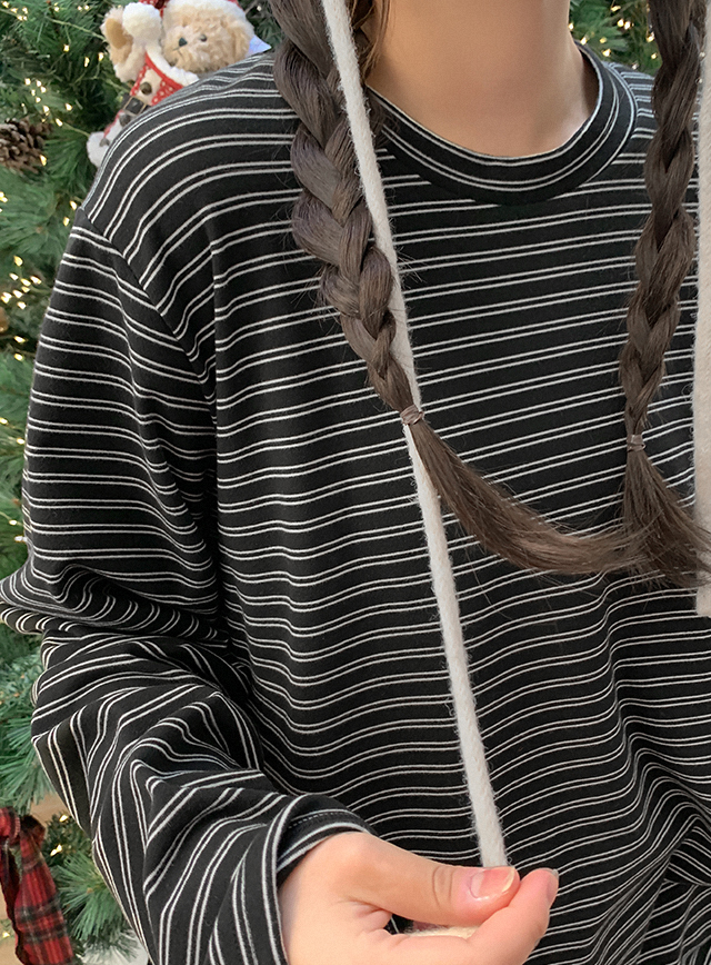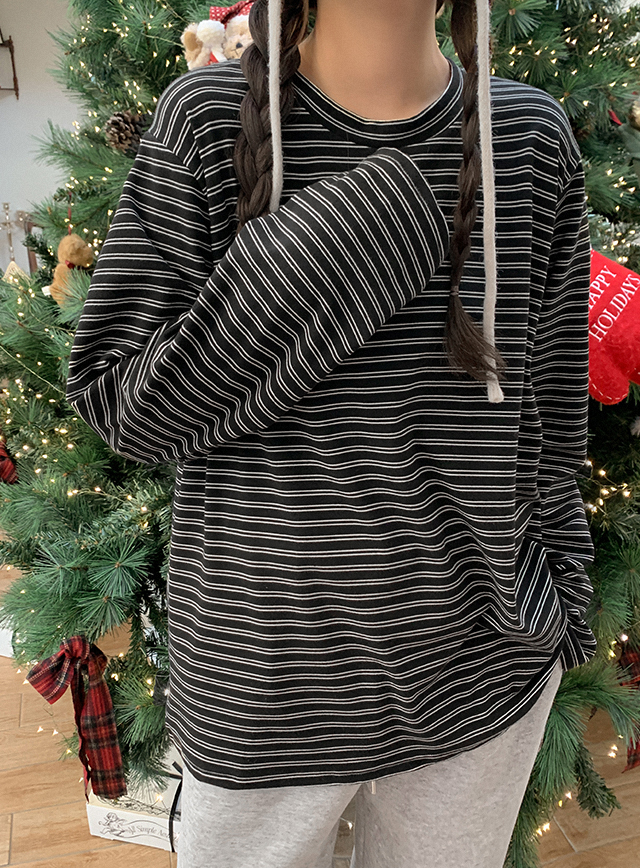 리쉬츠 条纹 拉绒 圆领 长袖 T恤衫 85493