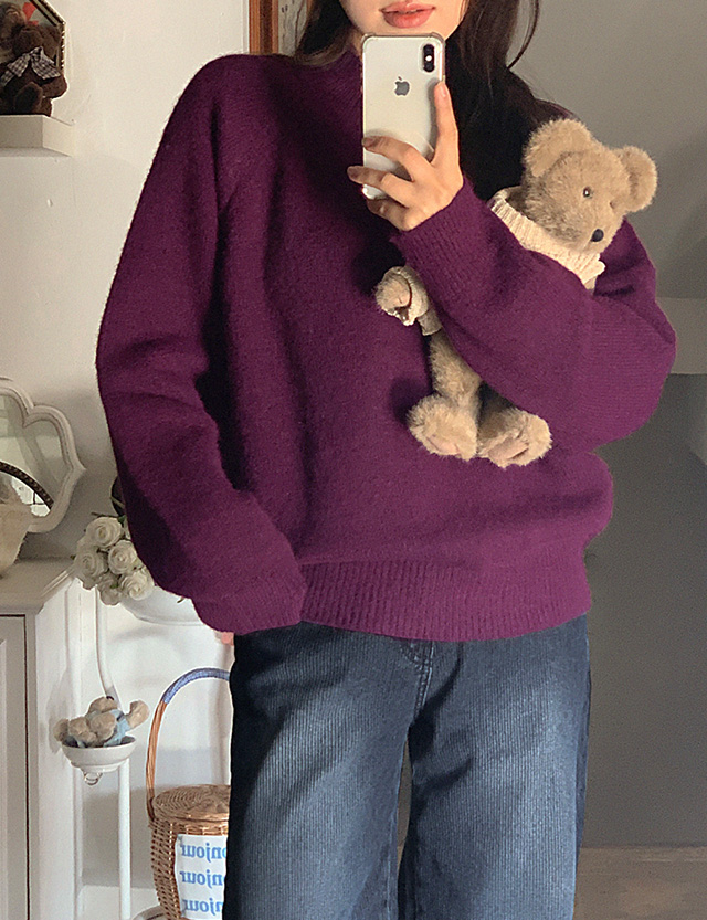 포이틴 宽松 반목 羊毛 针织衫 85457