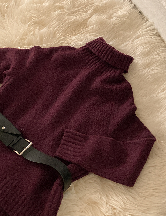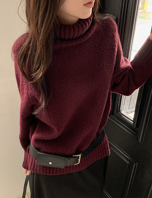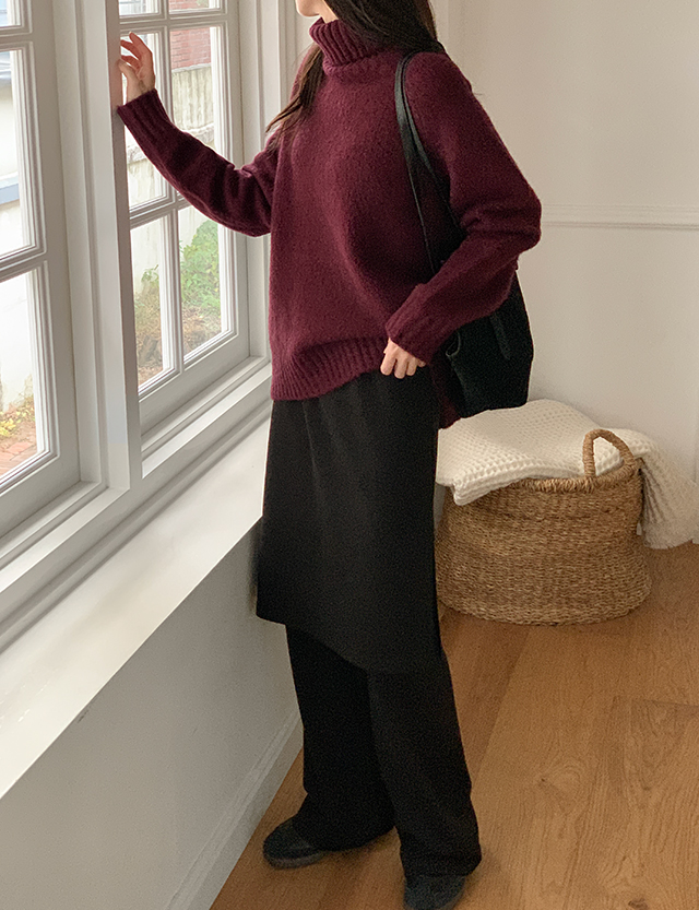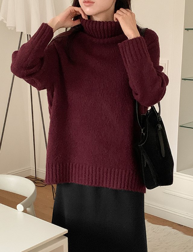 톤 다운 된 차분한 컬러 구성의 하이넥 폴라 니트