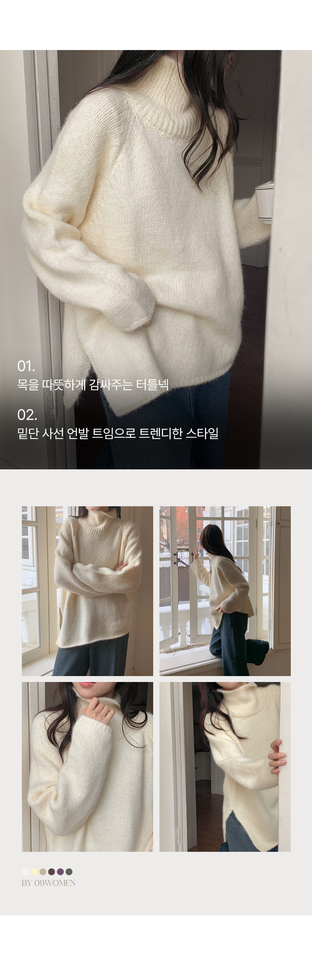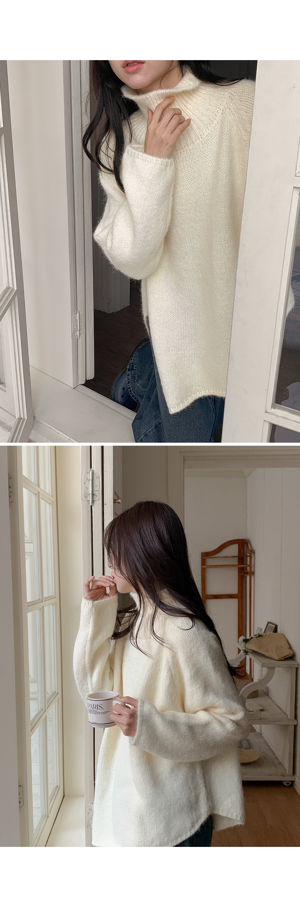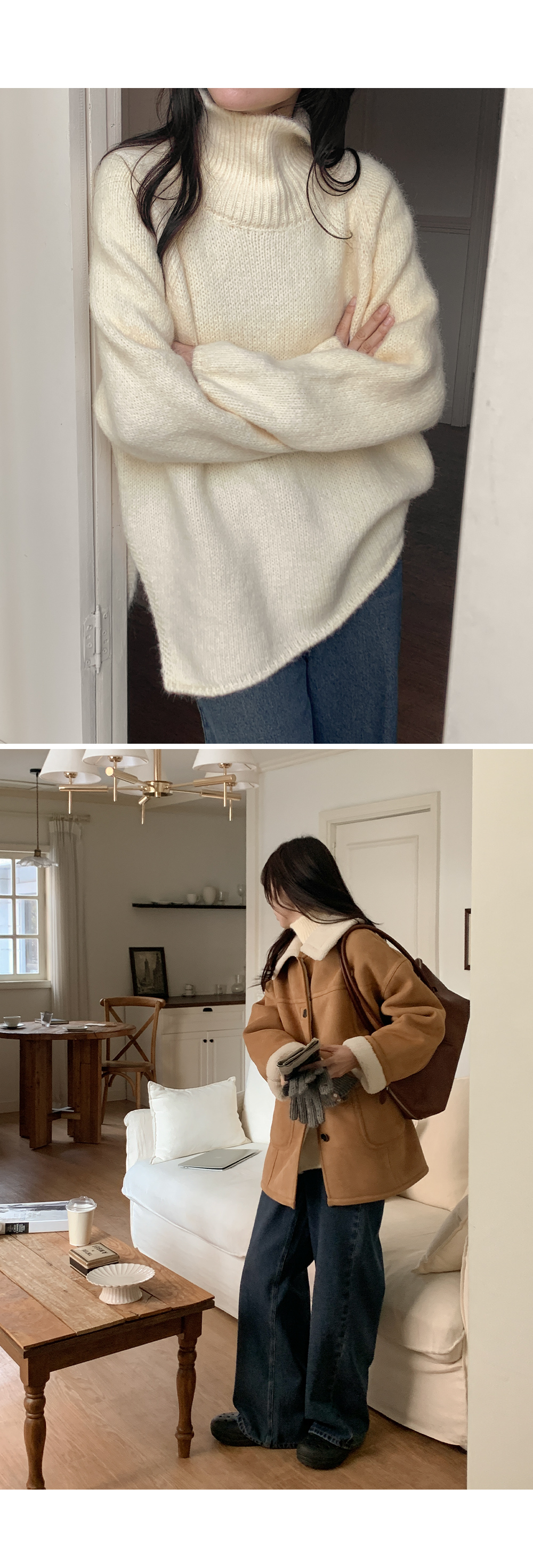 길게 올라오는 터틀넥이 목선을 슬림하게 잡아줘