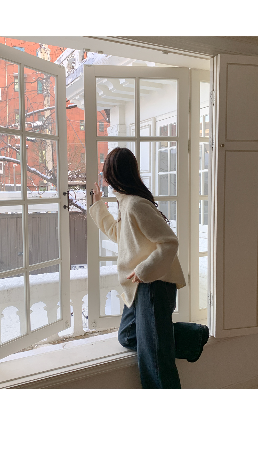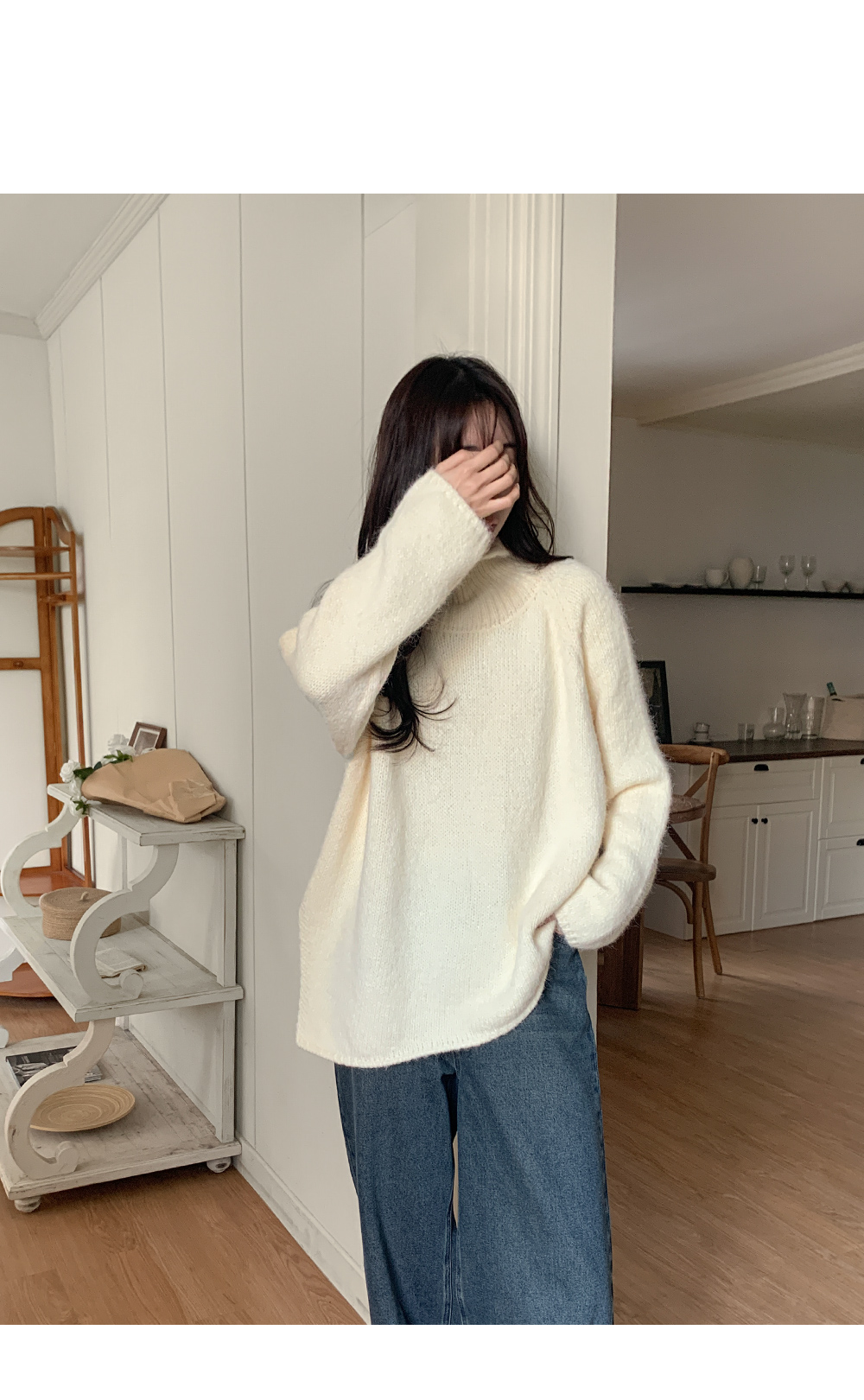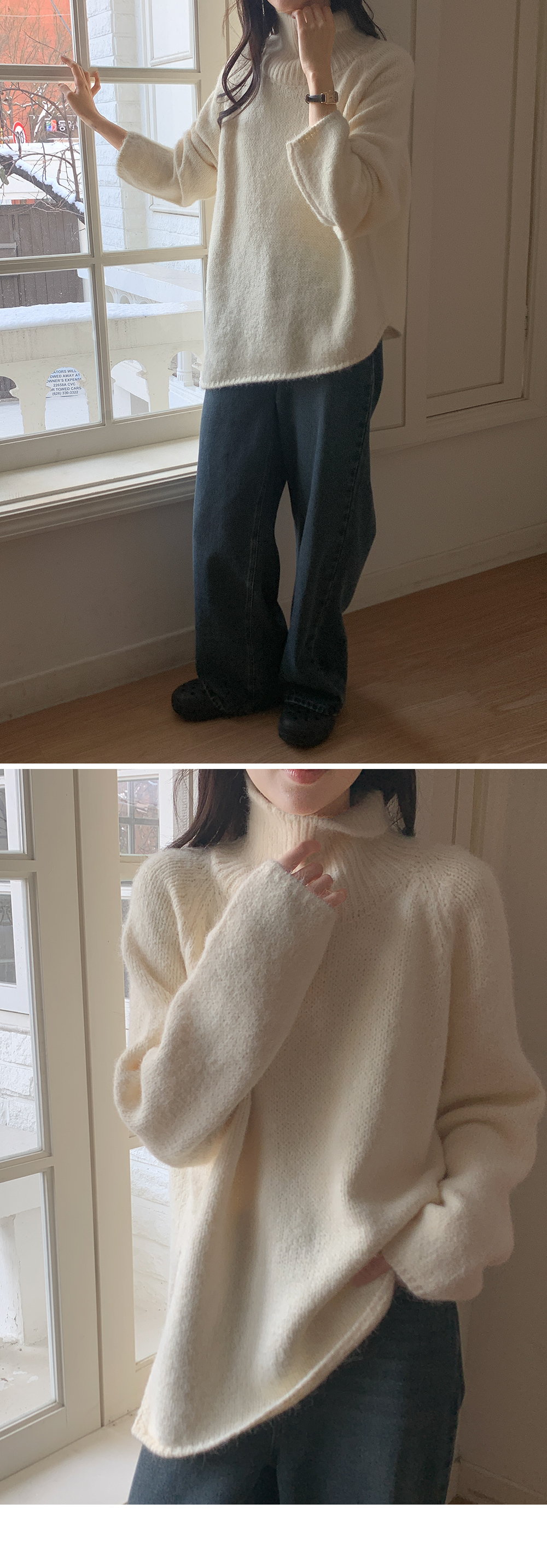 길게 올라오는 터틀넥이 목선을 슬림하게 잡아줘