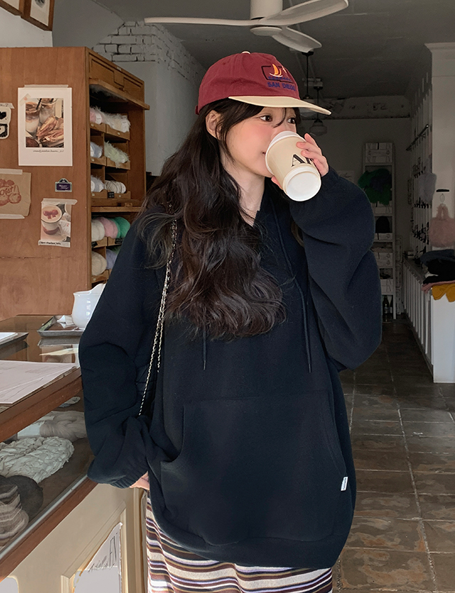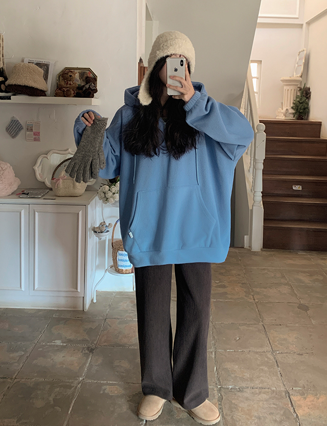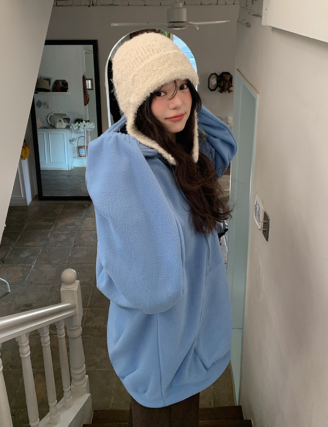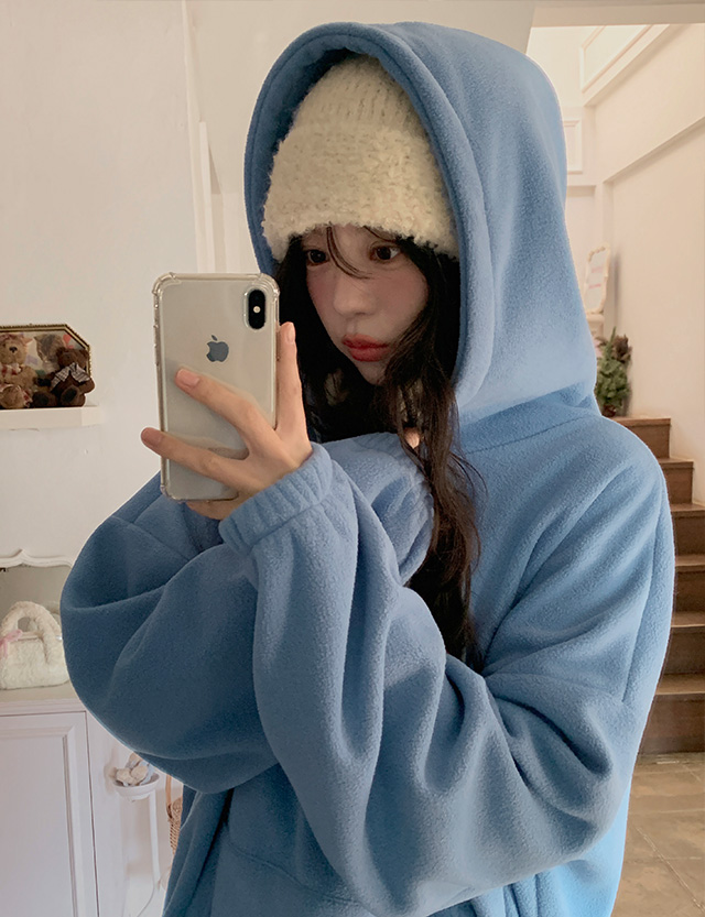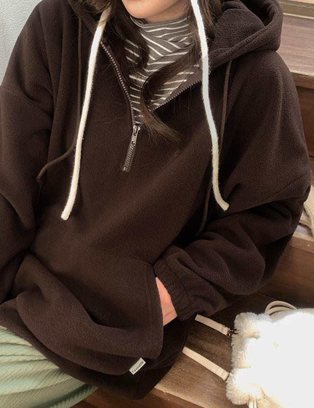 여리하게 입기 좋은 반집업 플리스 후드