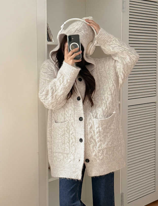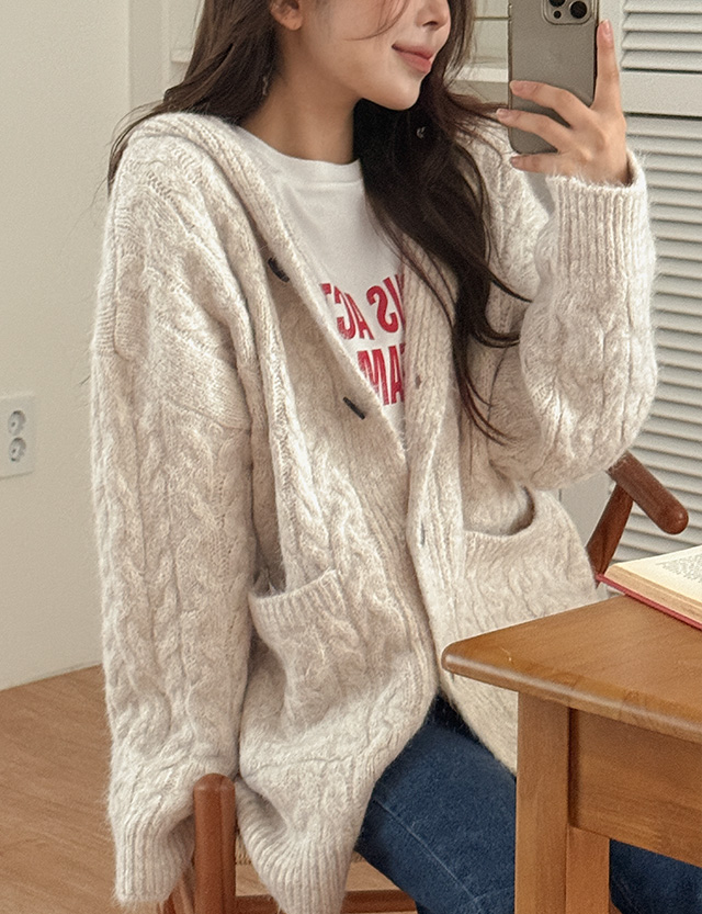 플팅 宽松 모헤어 麻花型 卫衣 开衫 85657