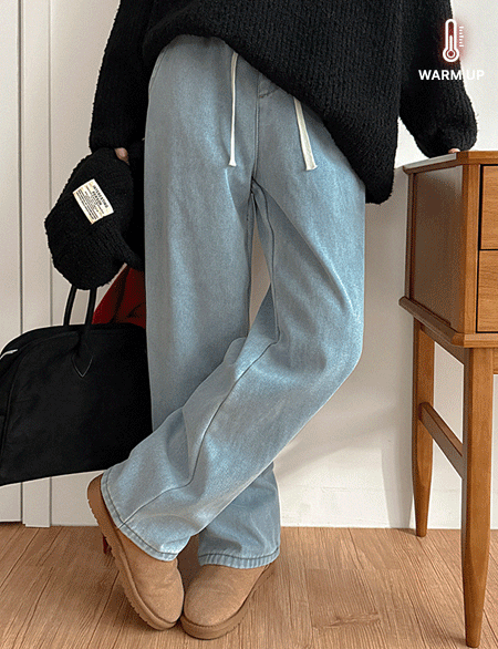 라비 속기모 웜 松紧带 세미와이드 牛仔裤子 85597