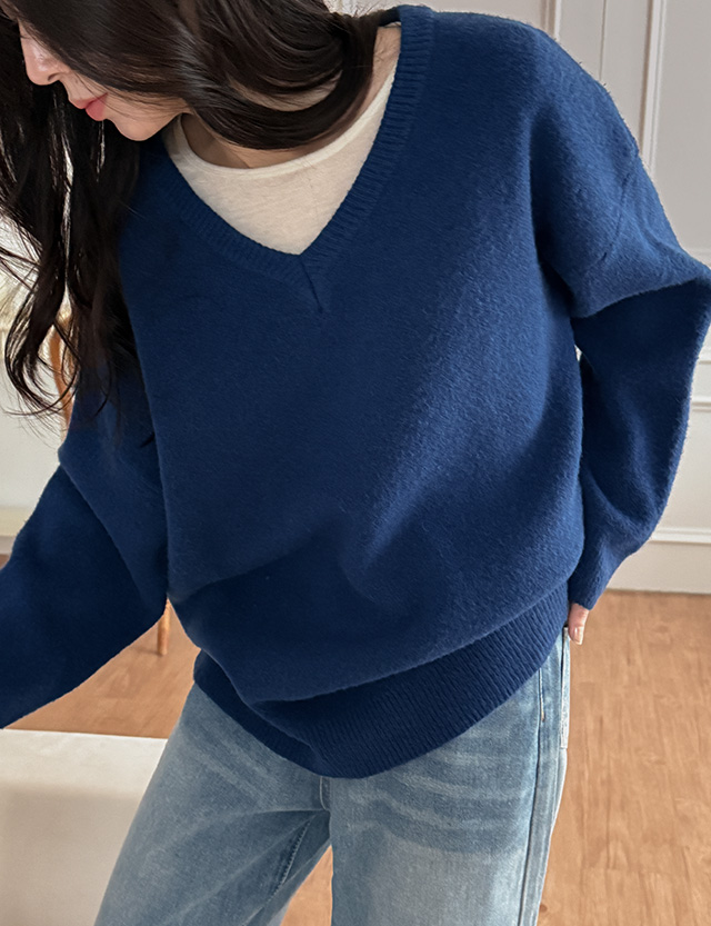 컬러 브이넥 루즈핏 니트