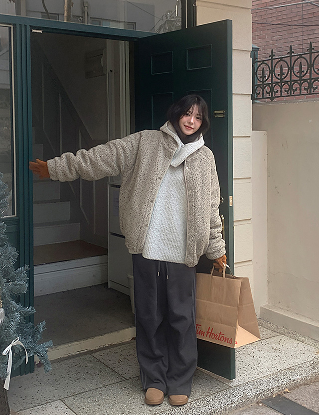 시리얼 宽松 羊毛 金羊毛 夹克 (3唡) 85551