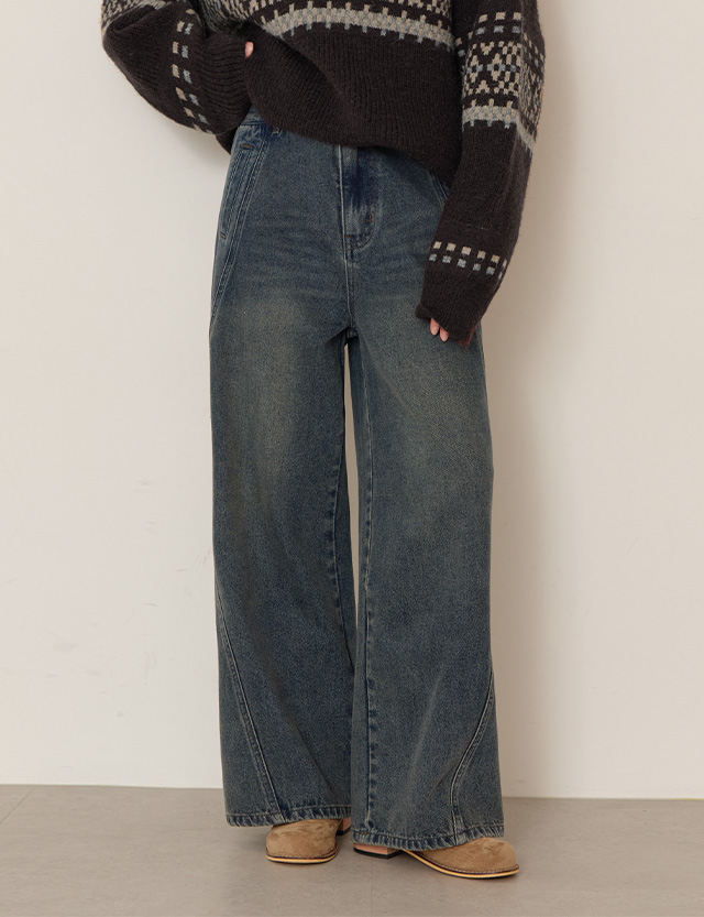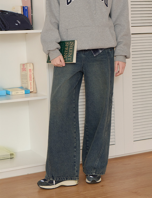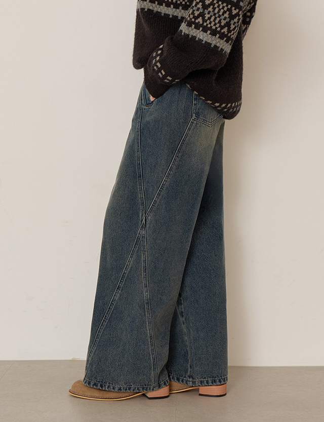 클라쎄 사선절개 宽 뒷밴딩 牛仔色 短裤 85643