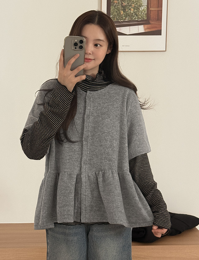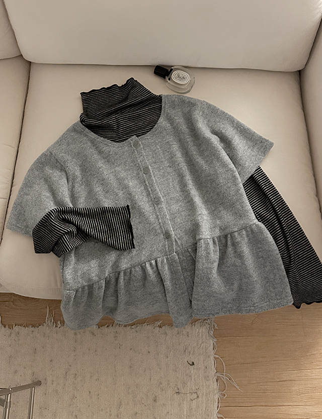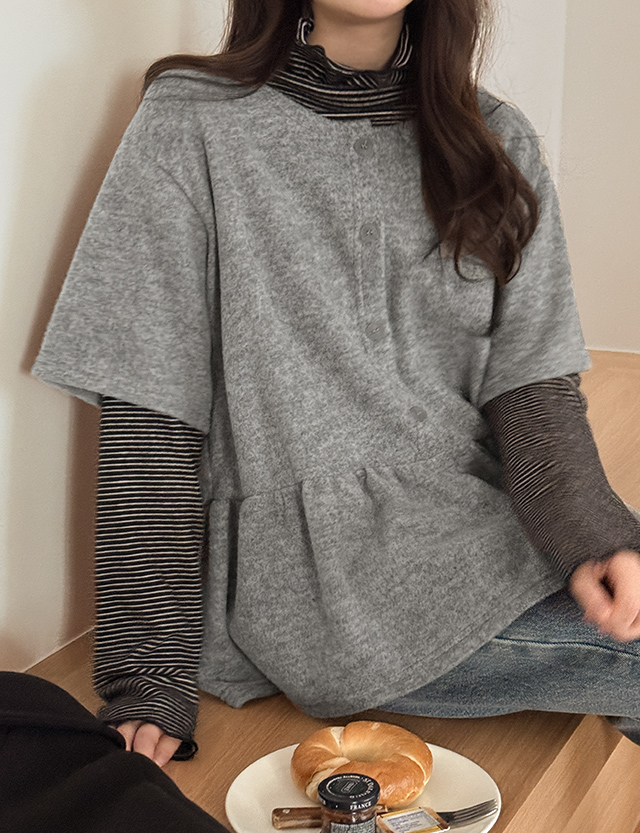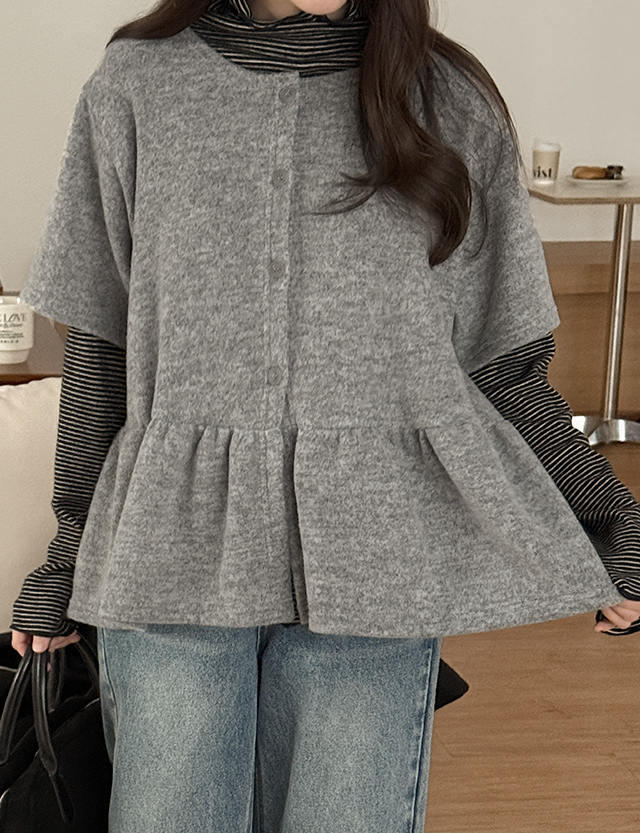 헤이틴 分层 拉绒 半袖 褶皱 开衫 85685