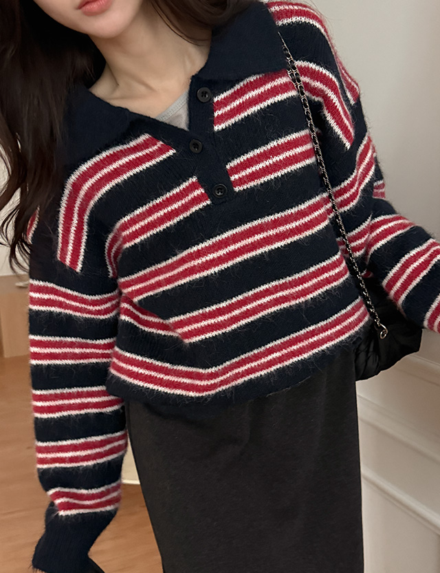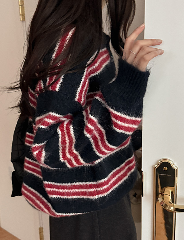 니브 헤어리 条纹 领 羊毛 针织衫 85713