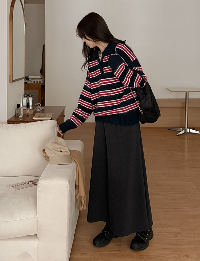 헤어리한 니트 패브릭에 스트라이프 컬러