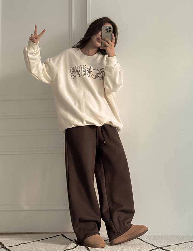 베이블 拉绒 松紧带 宽 다트 短裤 85794