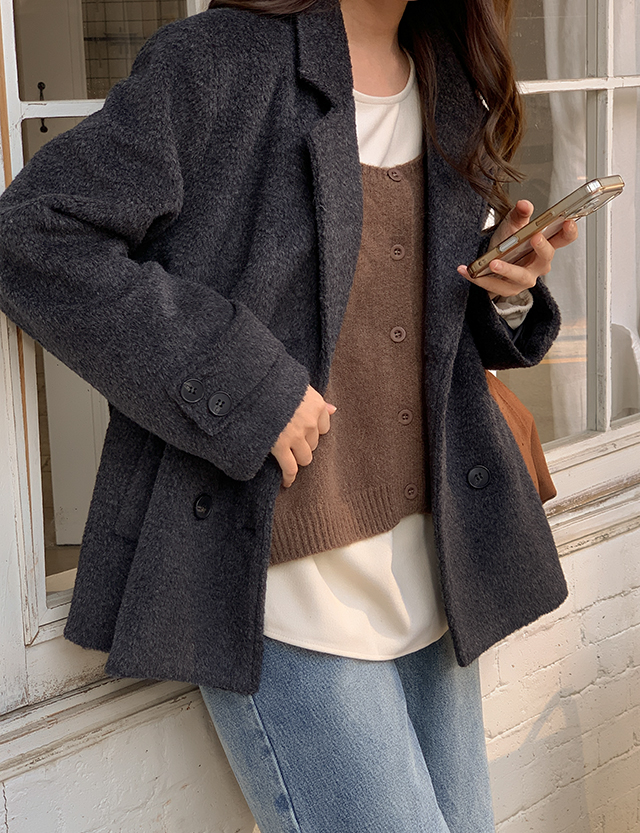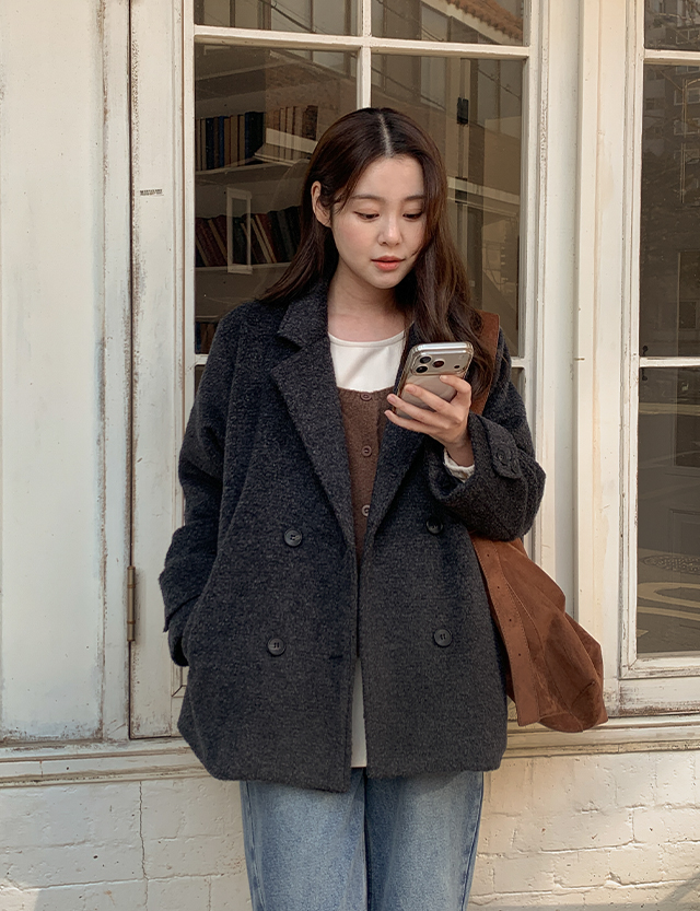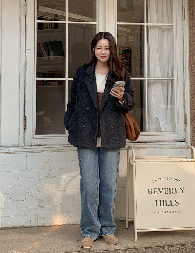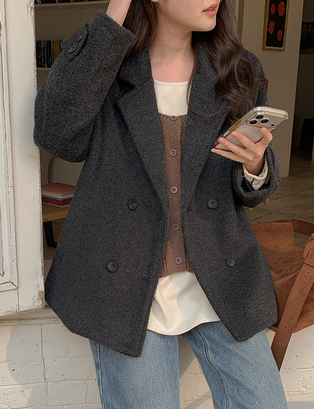 큐디스 보카시 双排扣 短上衣 羊毛 夹克 85836