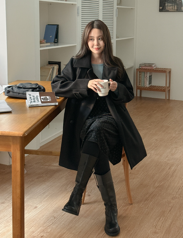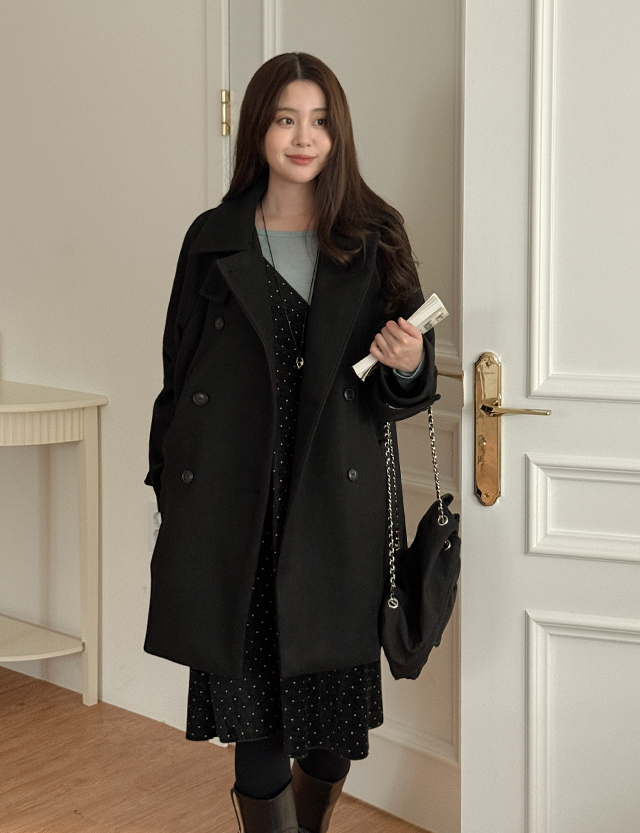 더블 브레스트 여밈 디테일이 깔끔하면서도