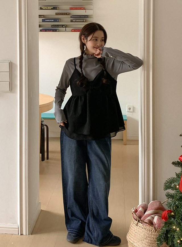 • 델케이 잔골 褶皱 高领毛衣 T恤衫 85842