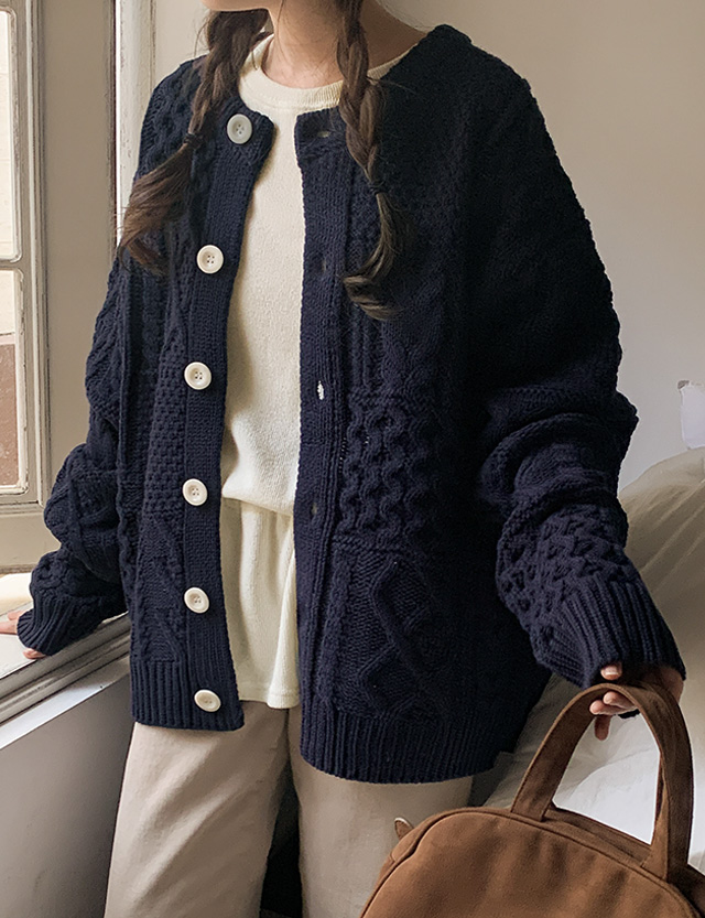 매력적인 루즈핏 케이블 가디건