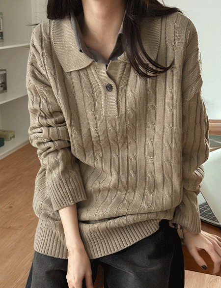 • 말즈 麻花型 领 버튼 针织衫 85918